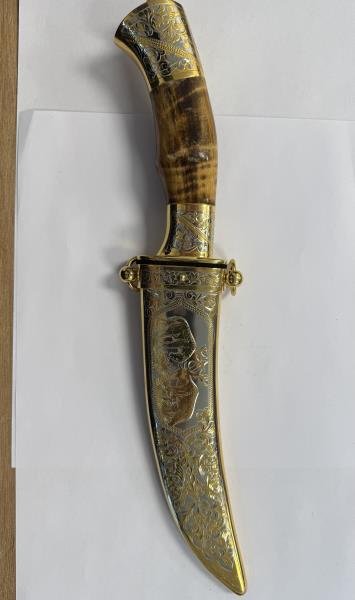 Нож с деревянной рукоятью и металлическими элементами продали за 155,2 тыс. тенге, что также соответствует стартовой цене.
