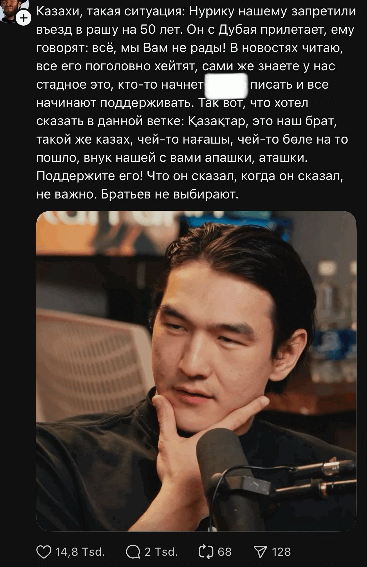 А третьи обсуждали уже не самого Нурлана, а реакцию соотечественников: «Начались проблемы — кто первый его топит и злорадствует? Озіміз. Казахи».