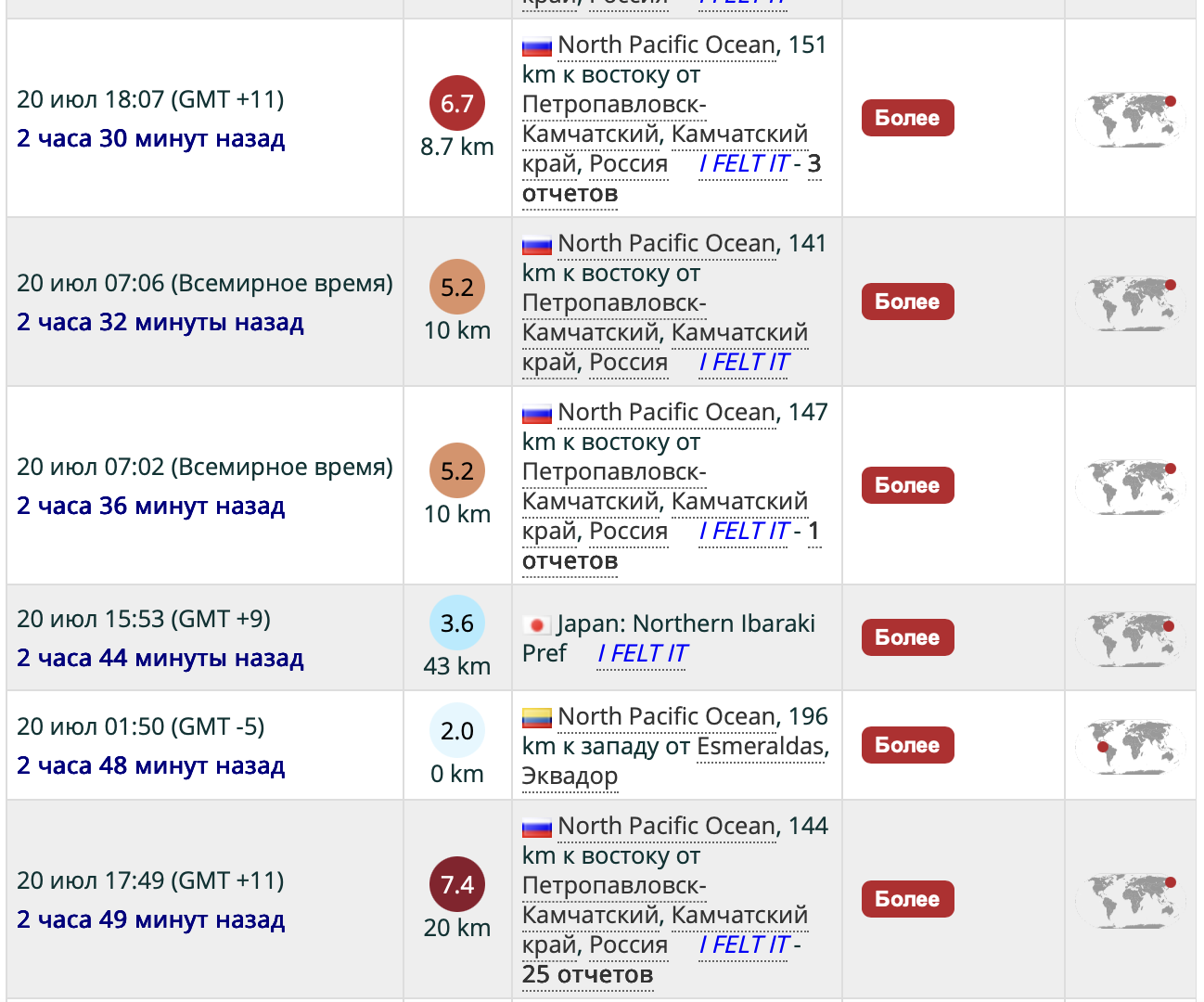 Сразу несколько землетрясений и афтершоков произошли в акватории Тихого океана, сообщает Orda.kz. Буйство стихии почувствовали жители Дальнего Востока России.