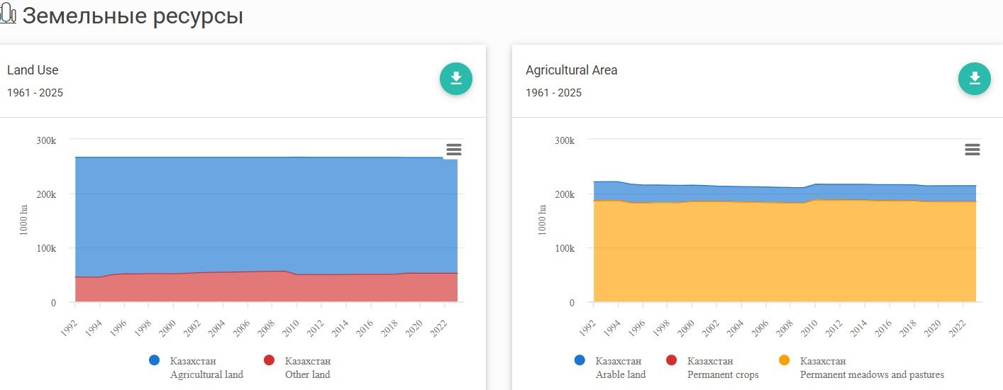 Таким образом, обладая значительными земельными ресурсами, Казахстан постепенно трансформирует свою аграрную модель, делая акцент на устойчивость, рентабельность и диверсификацию производства.