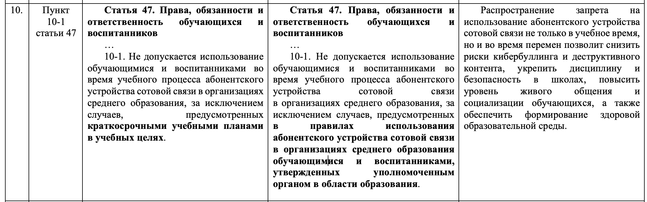 «Поэтому многие ведущие школы — Bilim, „Назарбаев интеллектуальные школы“ и другие — нашли, во-первых, мужество, во-вторых, волю, взяли и запретили использование смартфонов в школах. Я считаю, что это правильно. Учебный процесс — он учебный процесс. Поэтому есть предложение, чтобы передать функцию по запрету, ограничению использования мобильных телефонов с уровня каждой школы на уровень министерства»,