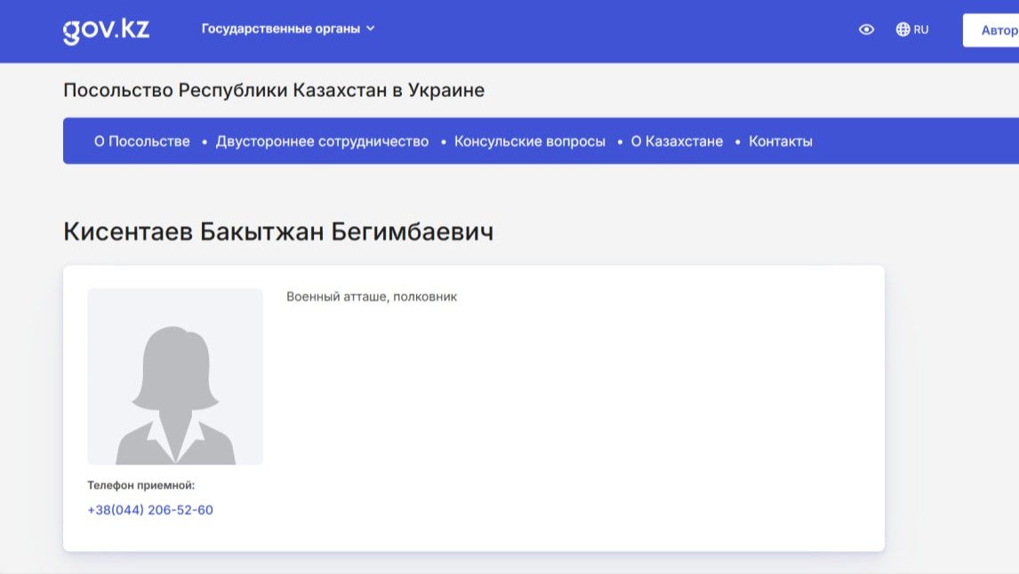 Мы обратили внимание на интересное совпадение: на сайте посольства Казахстана в Украине указано, что должность военного атташе занимает Бакытжан Бегимбаевич Кисентаев. Нам стало известно, что арестованный приходится ему племянником.