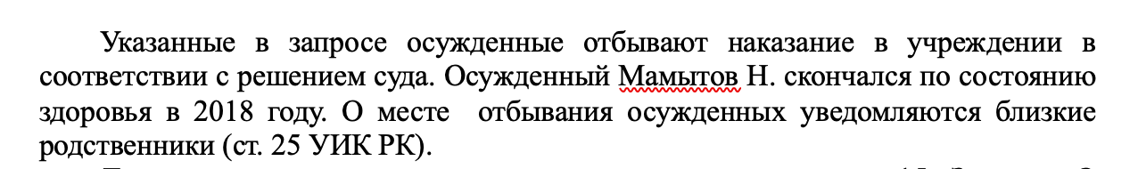 Один из осуждённых, Нурлан Мамытов, скончался в колонии в 2018 году.