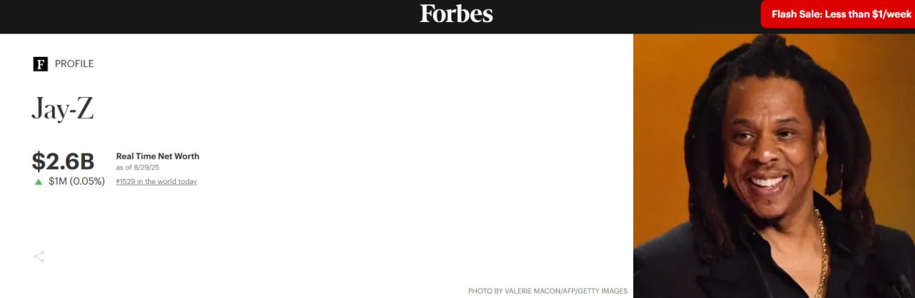 Jay-Z уверенно держится на вершине Forbes с состоянием в 2,6 млрд долларов — и делает деньги далеко не только на музыке, сообщает Orda.kz.