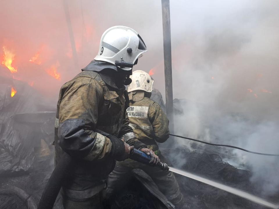 Пожарные полдня тушили огонь на складе шин, который горел с неимоверной силой.