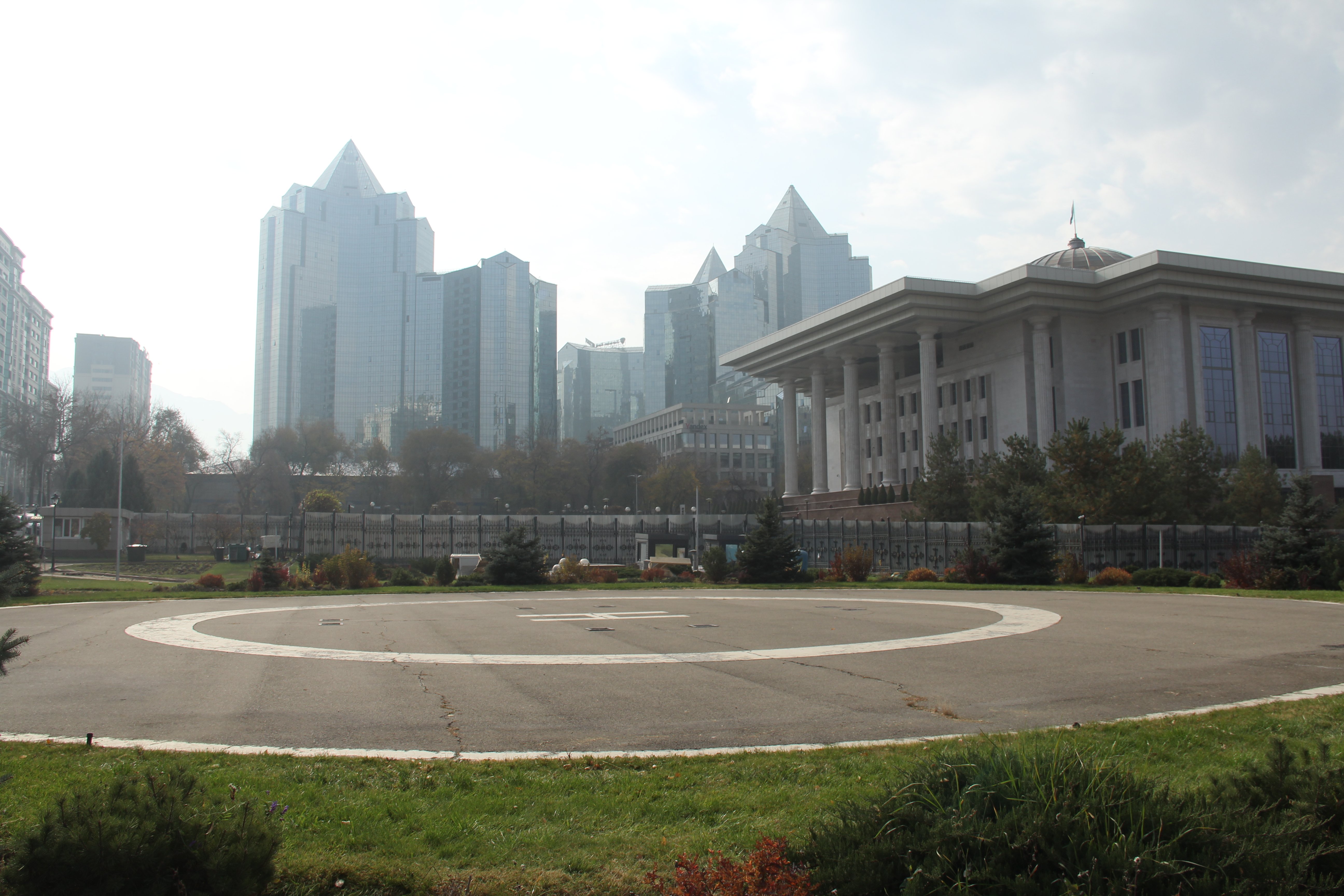 Рядом с ней находится ещё одна часть, которая осталась нетронутой даже после сноса резиденции — это вертолётная площадка. Как минимум пока она не закрыта и по ней можно прогуляться. Мало того, один из входов со стороны улицы Ганди ведёт прямо к ней.
