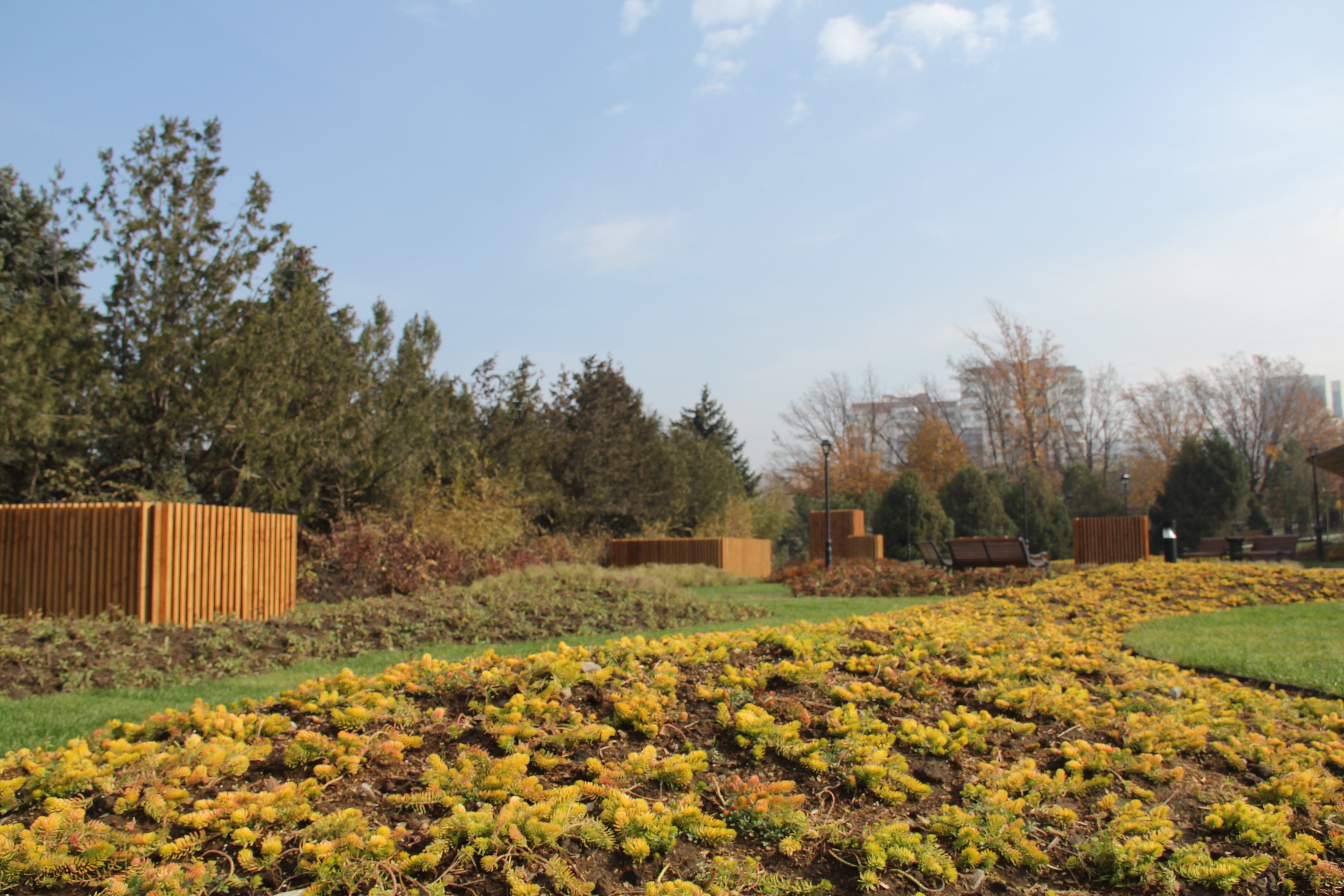 «Высажено 95 хвойных и 228 лиственных деревьев, продолжается посадка 469 хвойных и 384 лиственных кустарников, а также композиций из многолетних растений».