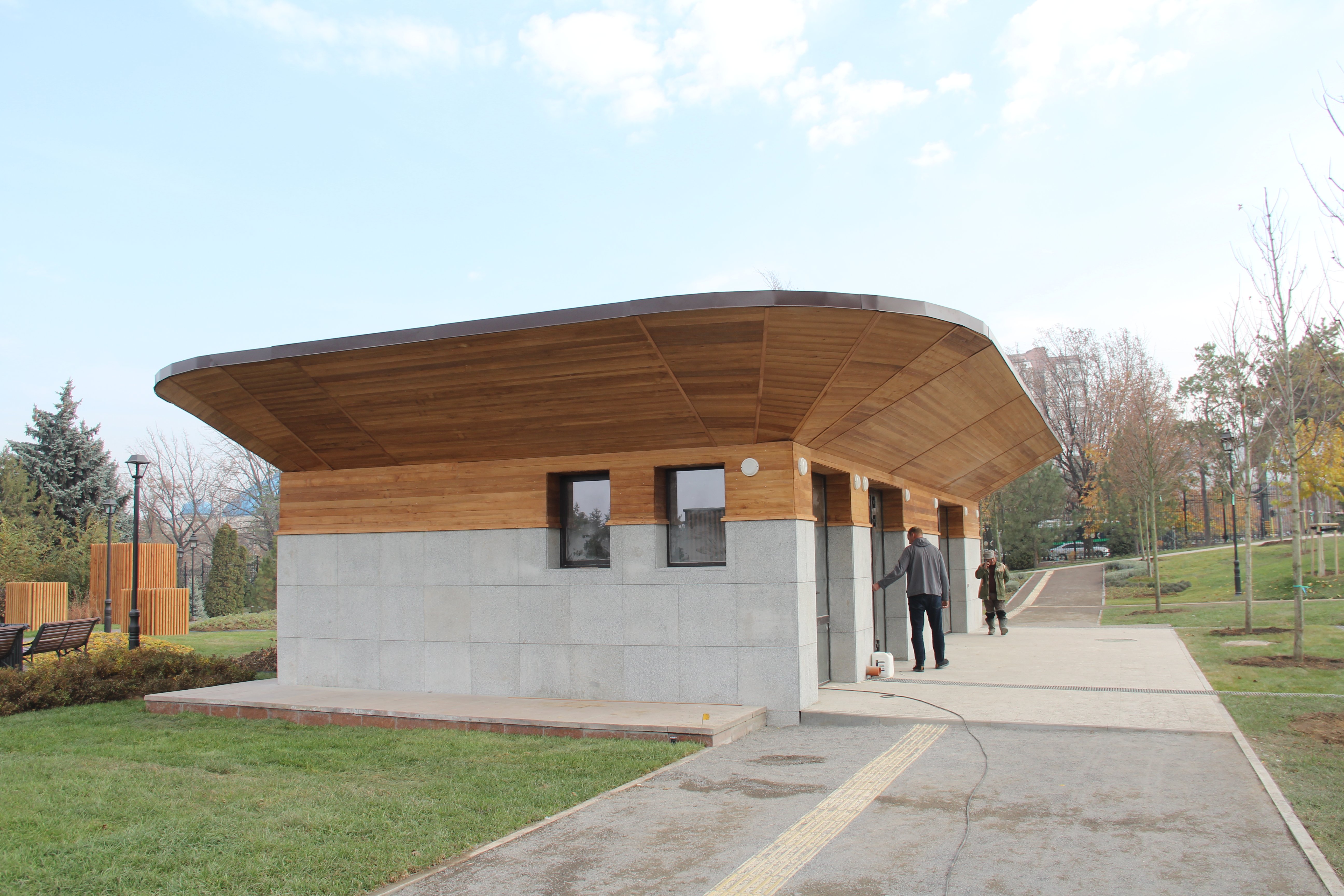 «Я здесь уже два месяца работаю на ландшафтном дизайне. За это время здесь намного лучше стало. Сейчас уже немного доделать осталось. 5 ноября должны открыть», рассказал один из рабочих по имени Дамир.