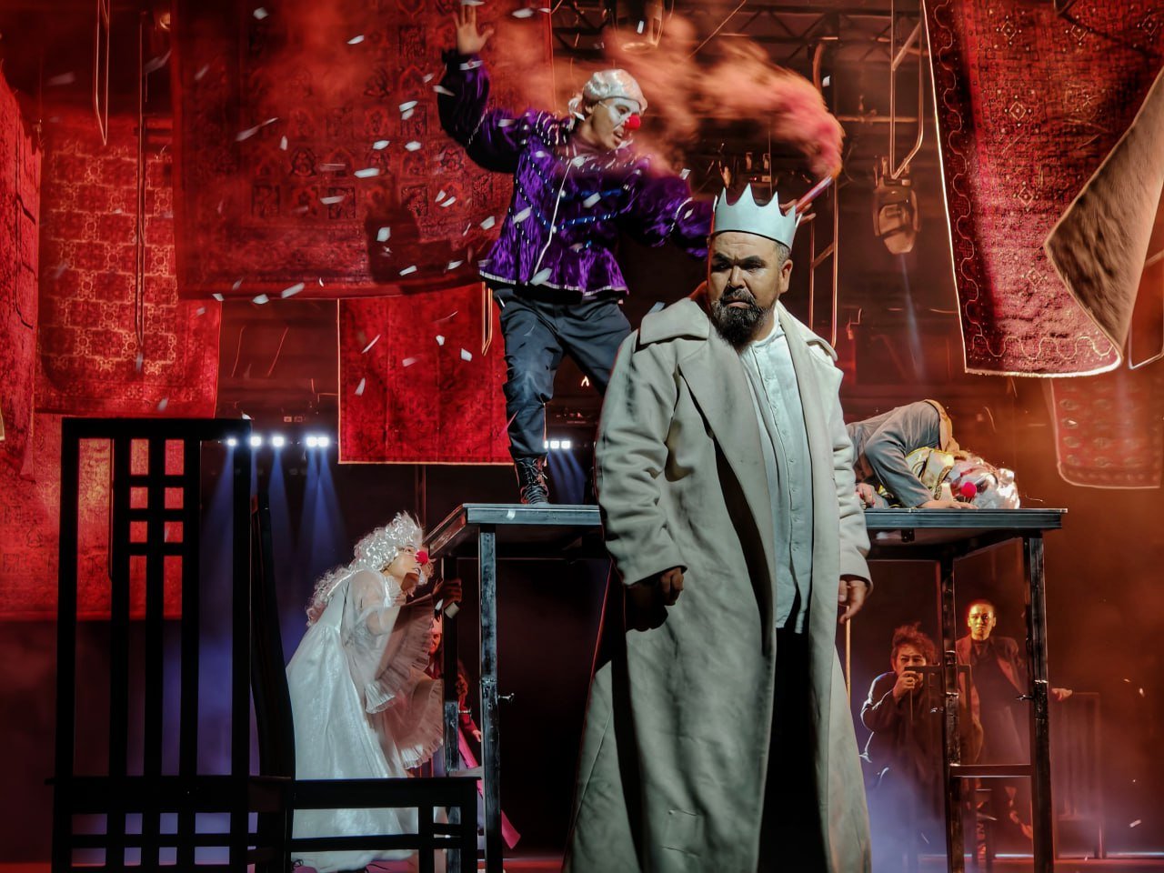Спектакль «Гамлет. Соңғы күндер»: истеричный принц, красные ковры и летающие стулья