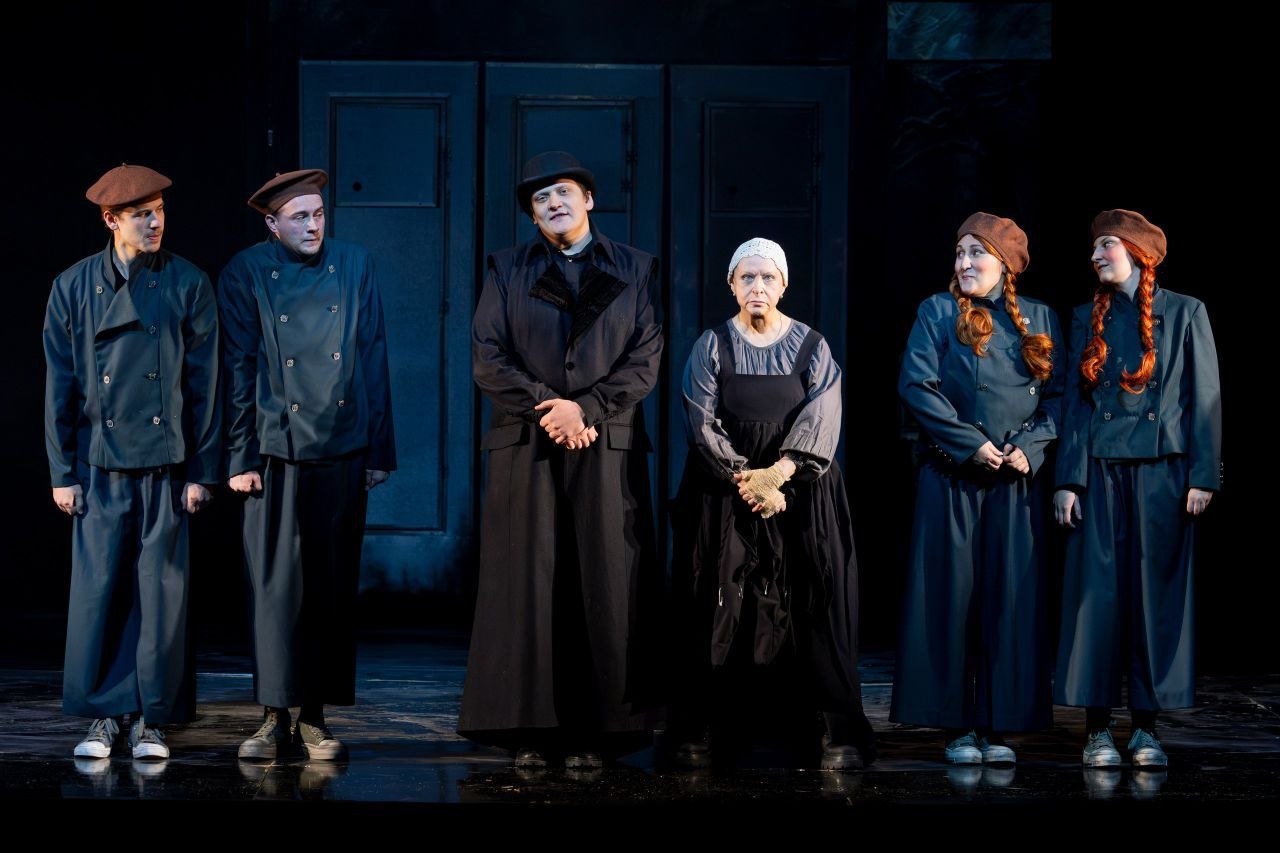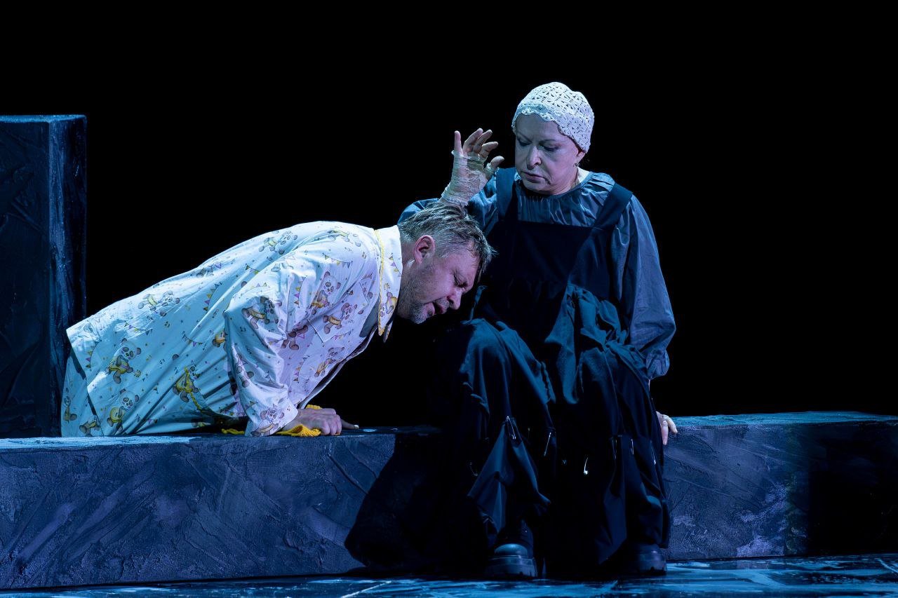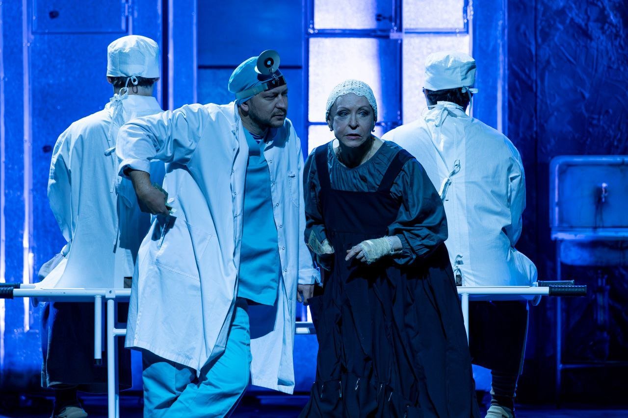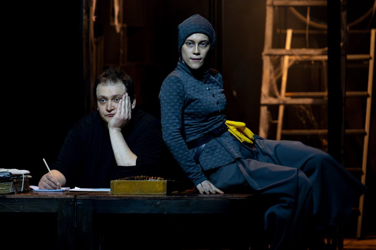 Неожиданно на первый план выходит второстепенный персонаж – служанка Улитушка. Она как связующее звено – герои один за другим погибают, а она всё время остаётся в доме. Улита не расстаётся с метлой: взмах – и одна мизансцена сменяет другую. Этим она похожа на Бабу Ягу, такое впечатление подкрепляется музыкой: саундтреком к спектаклю стали славянские фольклорные напевы в техно-обработке. Поначалу режет слух, но потом понимаешь, что есть в этом и свой шарм.