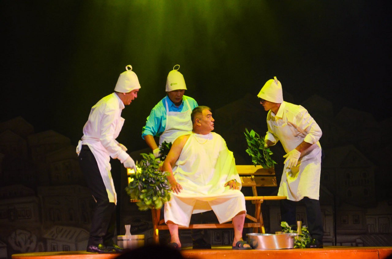 «Ревизор» – парадоксальная пьеса. Меняя время и место постановки, она не только не становится хуже, наоборот – только набирает актуальность. В трактовке Уйгурского театра Хлестаков превращается в блогера, его слуга – в видеографа, а городничий – в акима. У персонажей отбирают фамилии, зато награждают узнаваемыми восточными чертами. Даже первая сцена спектакля проходит в бане, куда высокопоставленные «агашки» пришли отдохнуть.