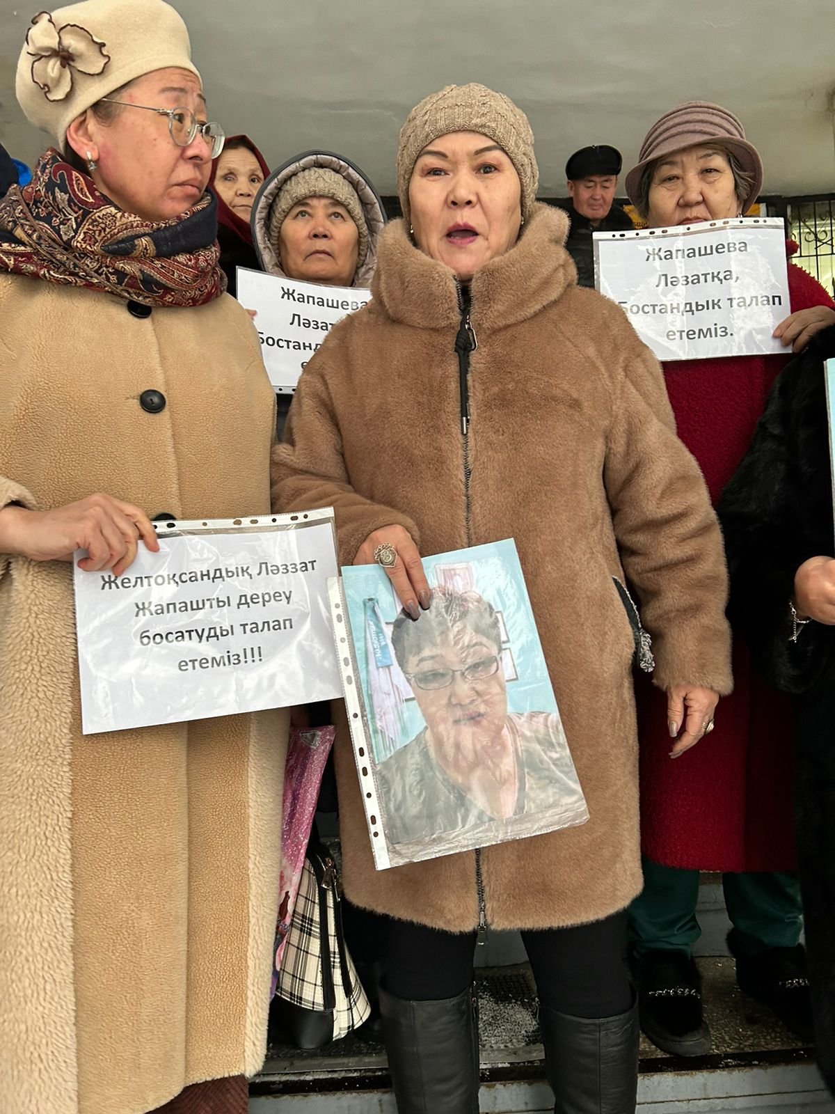 Сейчас ее дело рассматривается в Каскеленском суде. Однако сторонники Жапашевой уверяют, что процесс идет с нарушениями. Кроме того, здоровье женщины вызывает большие опасения.