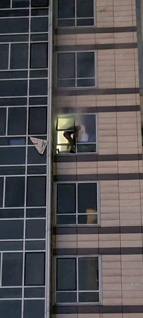Ранее в окне квартиры, где находился стрелок, были видны тени и всполохи света. Вероятнее всего, от фонариков.
