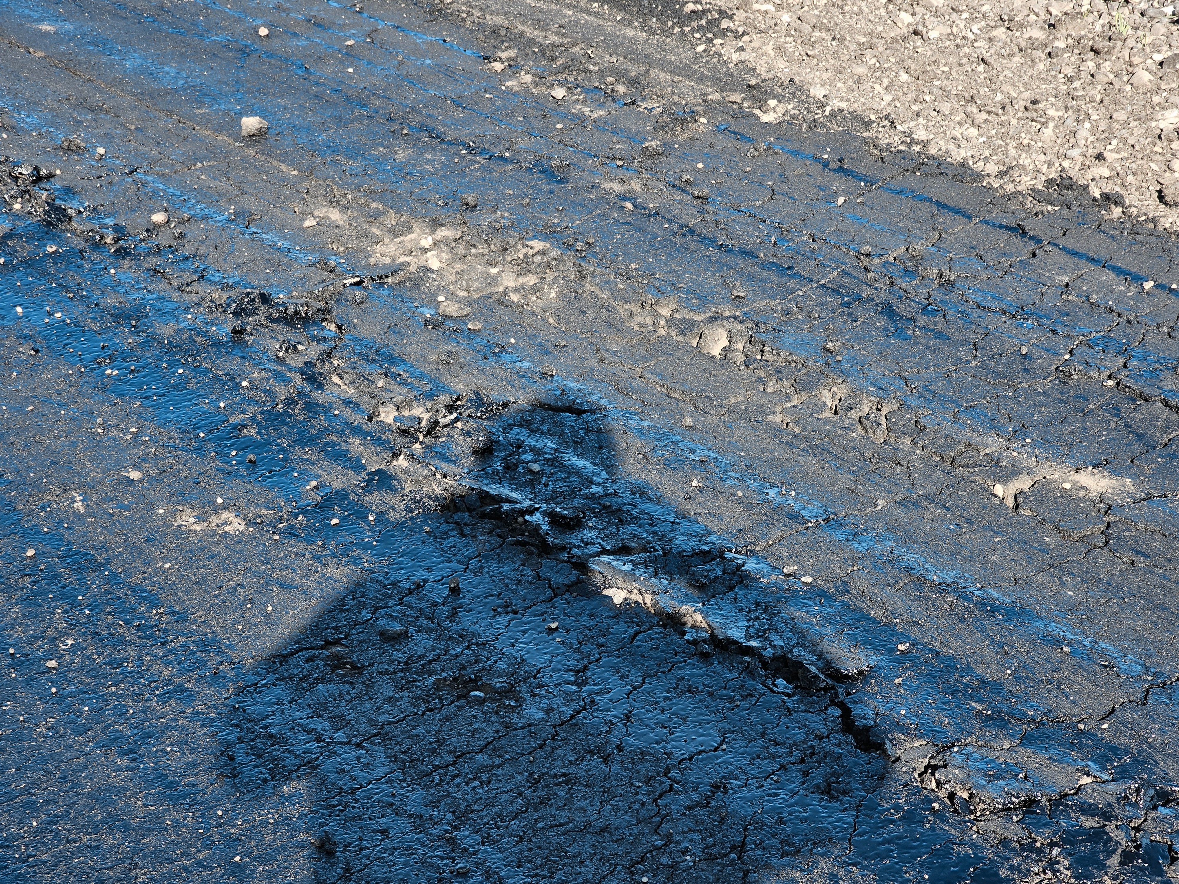 Можно допустить, что это лишь первый слой, поверх которого будут закатаны ещё несколько. Однако, при слабом, проваливающемся основании — прочность верхних слоёв не играет ведущей роли.