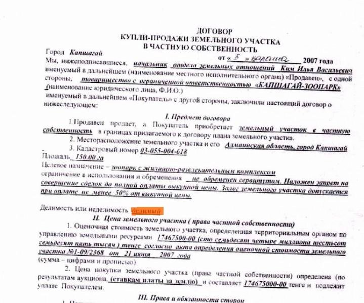 И те самые 150 гектаров, которые акимат в 2007 году продал ТОО «Капшагай-Зоопарк», находятся как раз на юге от города. Как мы ранее писали, сделка купли-продажи по ним была совершена в ноябре 2007-го. Семья Никелей выплатила 174 675 000 тенге. Леонид Пономаренко предоставил в распоряжение редакции платёжные документы, которые были предъявлены в суде.