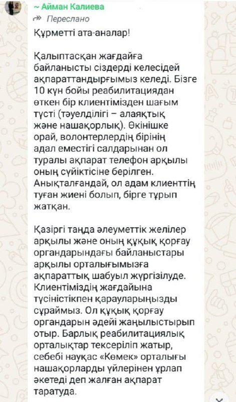 В редакции Orda.kz решили выслушать обе стороны и связались с представителями центра «Көмек». Центр расположен в Шымкенте. Его директор и психолог отказались от комментариев.