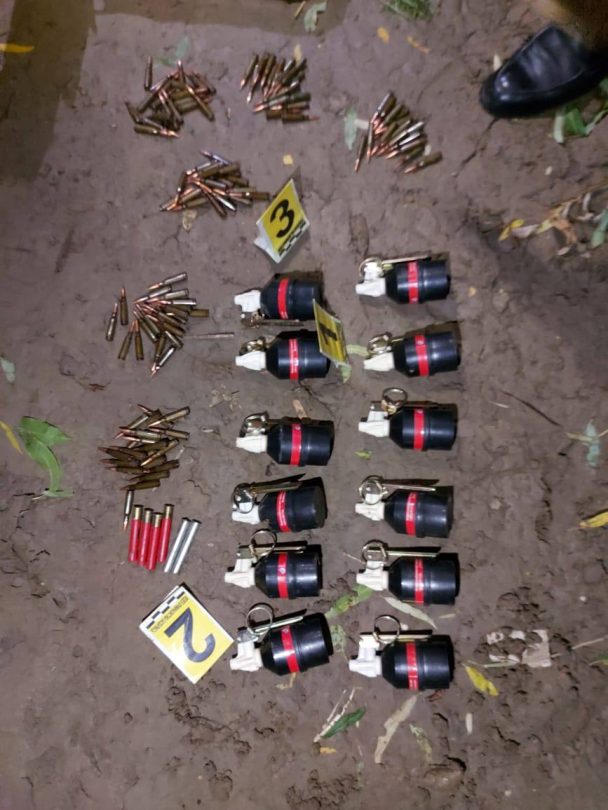 На следующий день на берегу Урала около поселка Балыкши сотрудники полиции обнаружили полиэтиленовый пакет, закопанный в землю. А внутри находились 12 светошумовых гранат, 6 патронов от ружья "Fiacah 410 mag", а также 119 патронов 5,45 мм калибра.