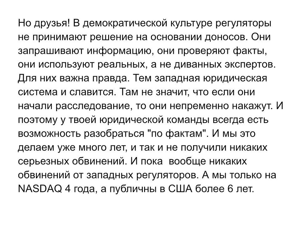 В западном мире – это вообще норма. Все друг друга проверяют, комиссия по ценным бумагам в каждый момент времени ведет расследования по многим сотням компаний, и далеко не всегда это заканчивается хоть какими-то санкциями и штрафами, отмечает миллиардер.