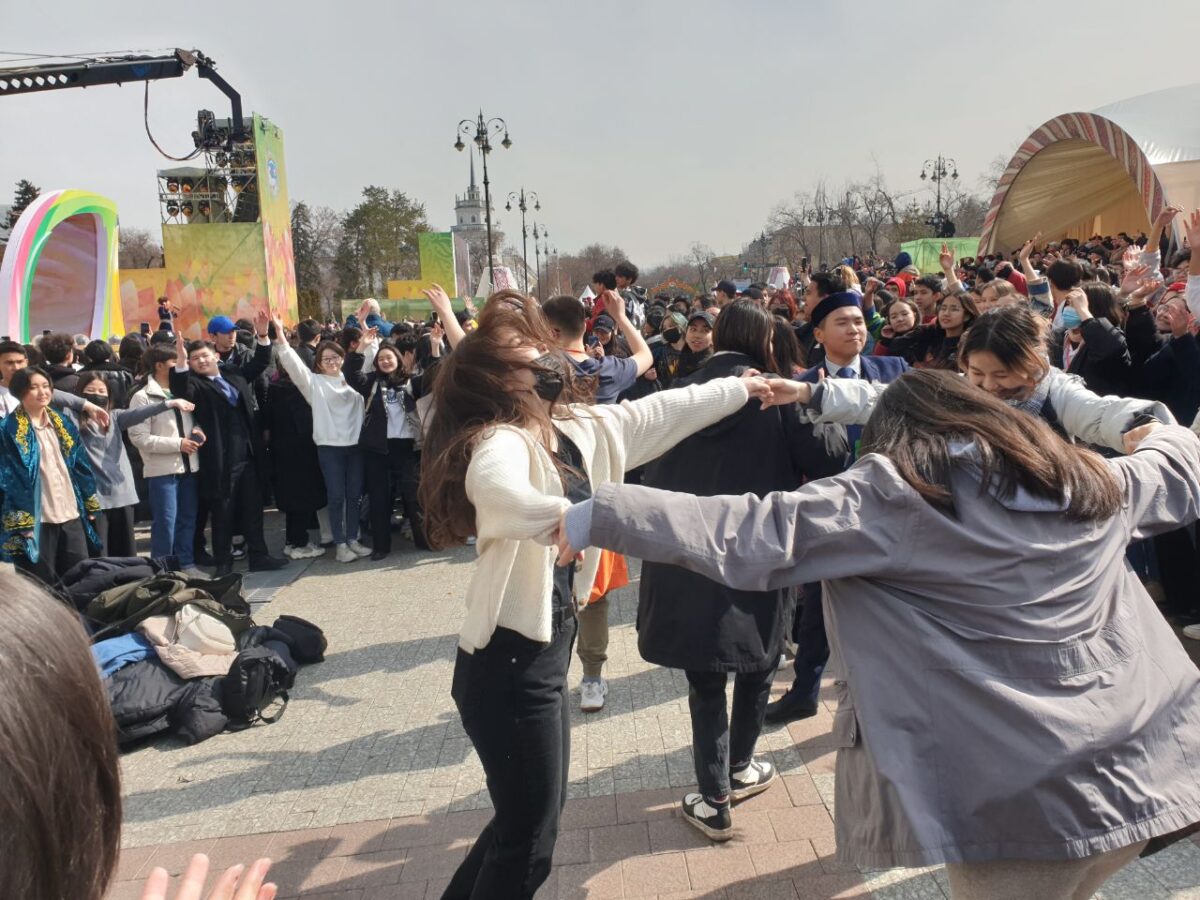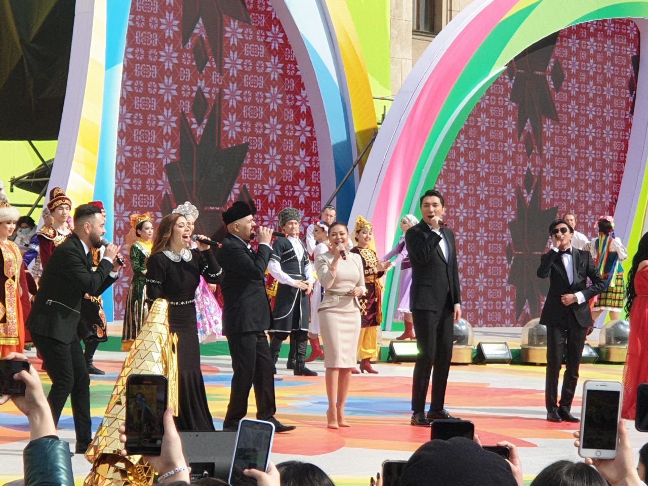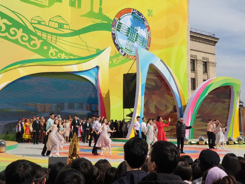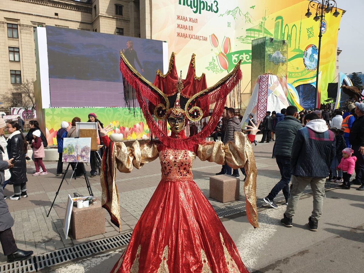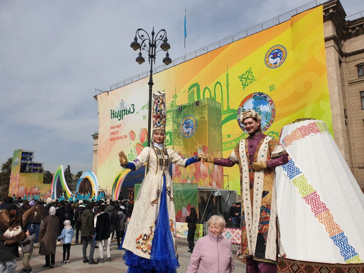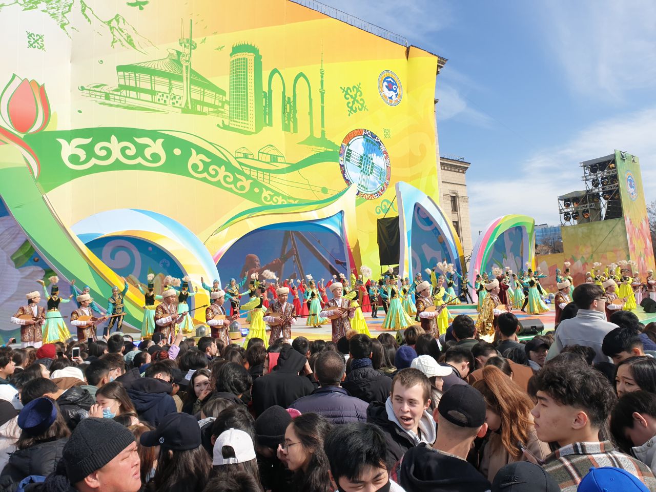 Выступление президента Казахстана длилось около пяти минут. После чего на сцену вышли артисты в национальных костюмах. Зрители снимали их на камеры, хлопали в ладоши и всячески поддерживали выступающих. Людей на площади с каждой минутой становилось всё больше.