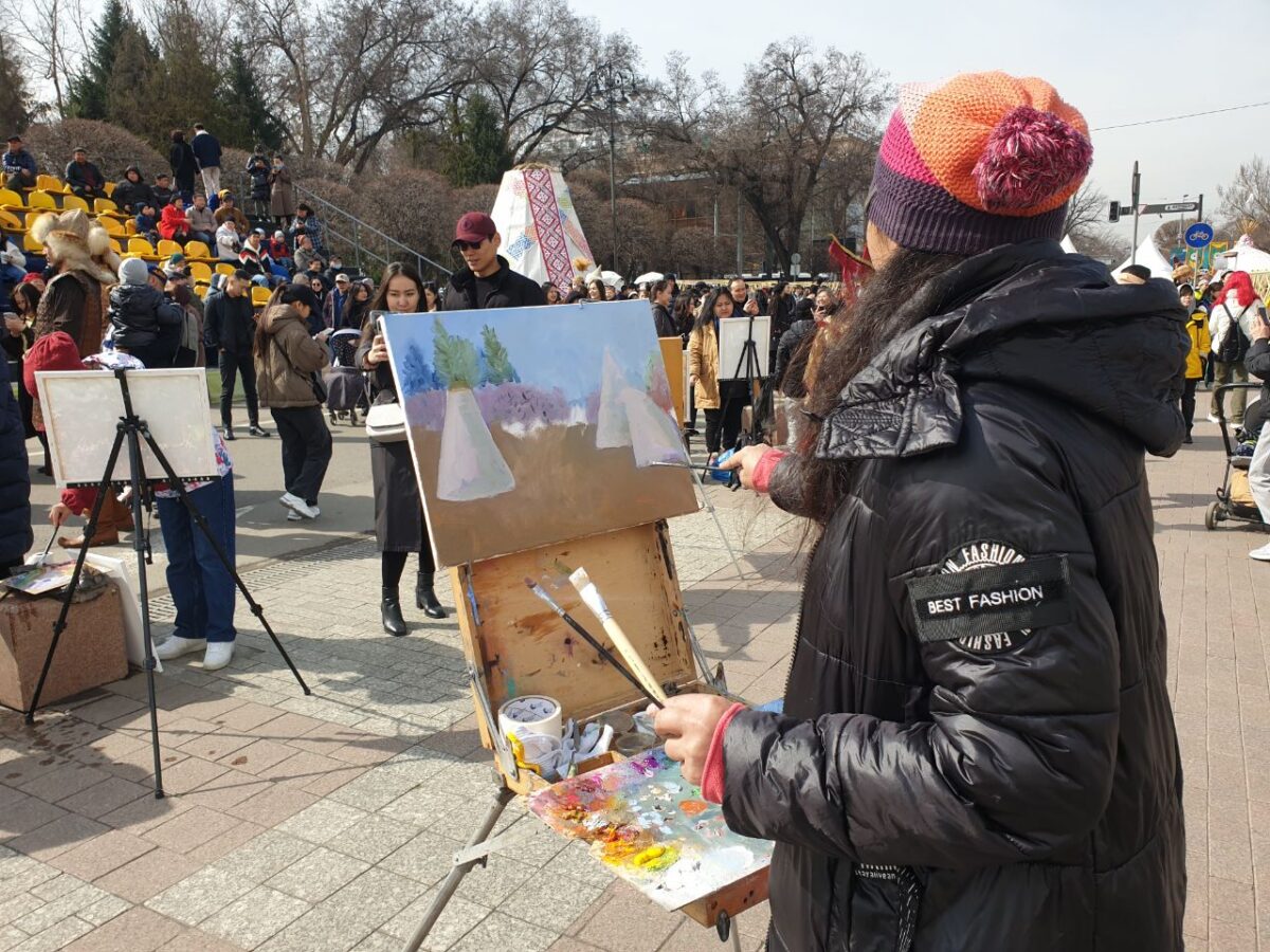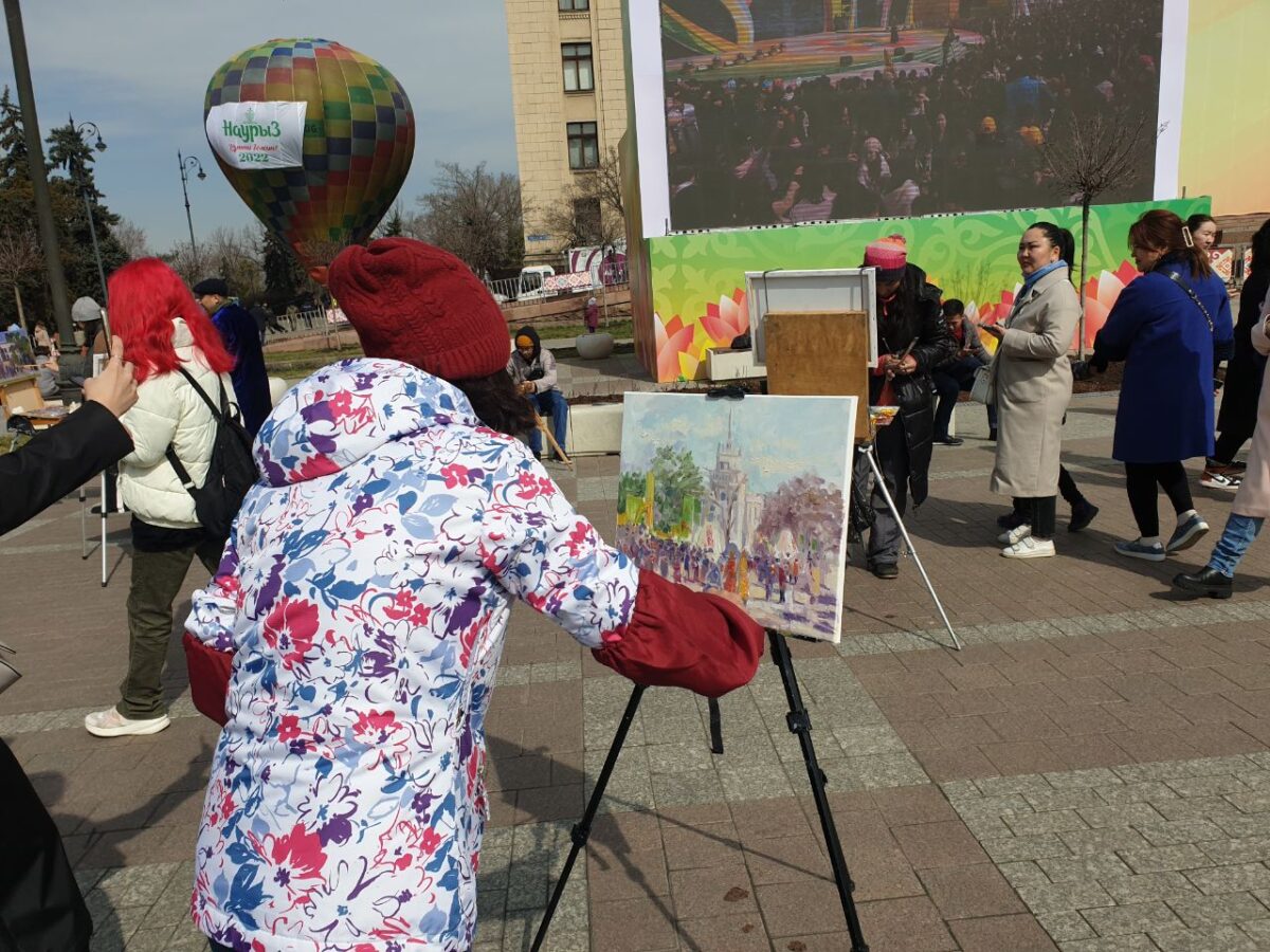 Кроме артистов, свои таланты демонстрировали алматинские художники. Картины мастеров отображали происходящее на площади.
