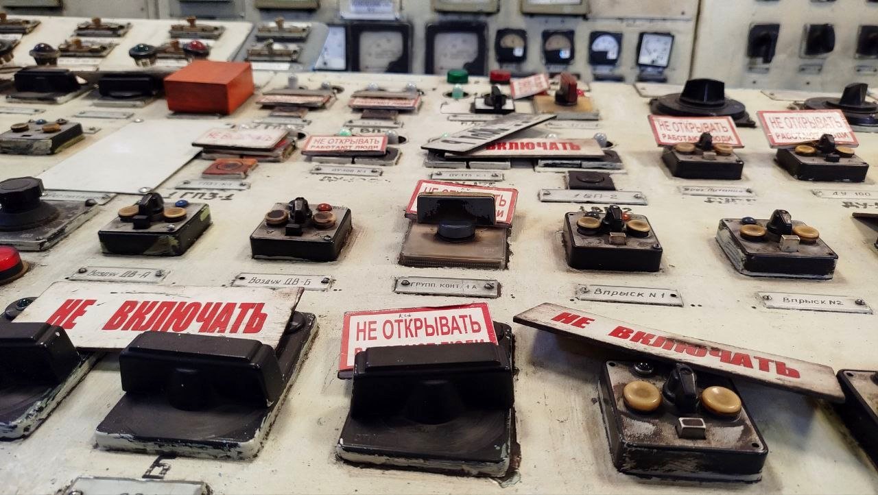 По пути заглядываем на один из щитов управления. Выглядит он тоже очень атмосферно: слева стена и стол с тумблерами, которыми регулируют рабочие процессы, справа — стена с рычагами для того же. На рычагах и тумблерах висят предупреждающие таблички. Следят за этим всем операторы, которые, возможно, одни из самых читающих людей в Алматы. Потому что, как нам объяснили, инструкции, которые они изучают, не уступают по объёму томам «Пути Абая».