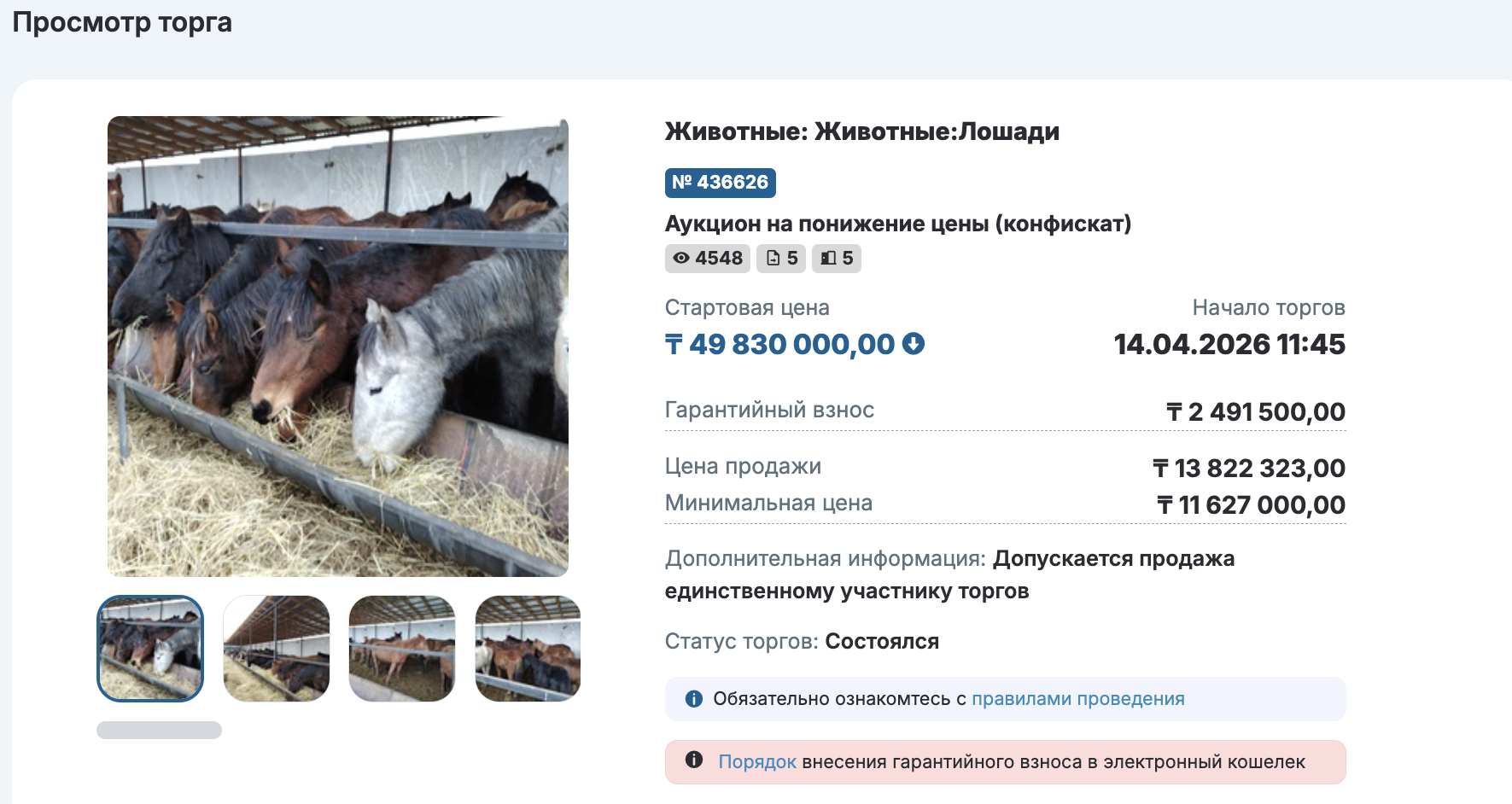 В итоге отдел финансов акимата подал на крестьянское хозяйство в суд с требованием признать лошадей бесхозными имуществом. Суд удовлетворил иск и постановил признать оставшиеся 54 головы бесхозяйными, передав их в коммунальную собственность. И вот теперь их продали новым хозяевам.
