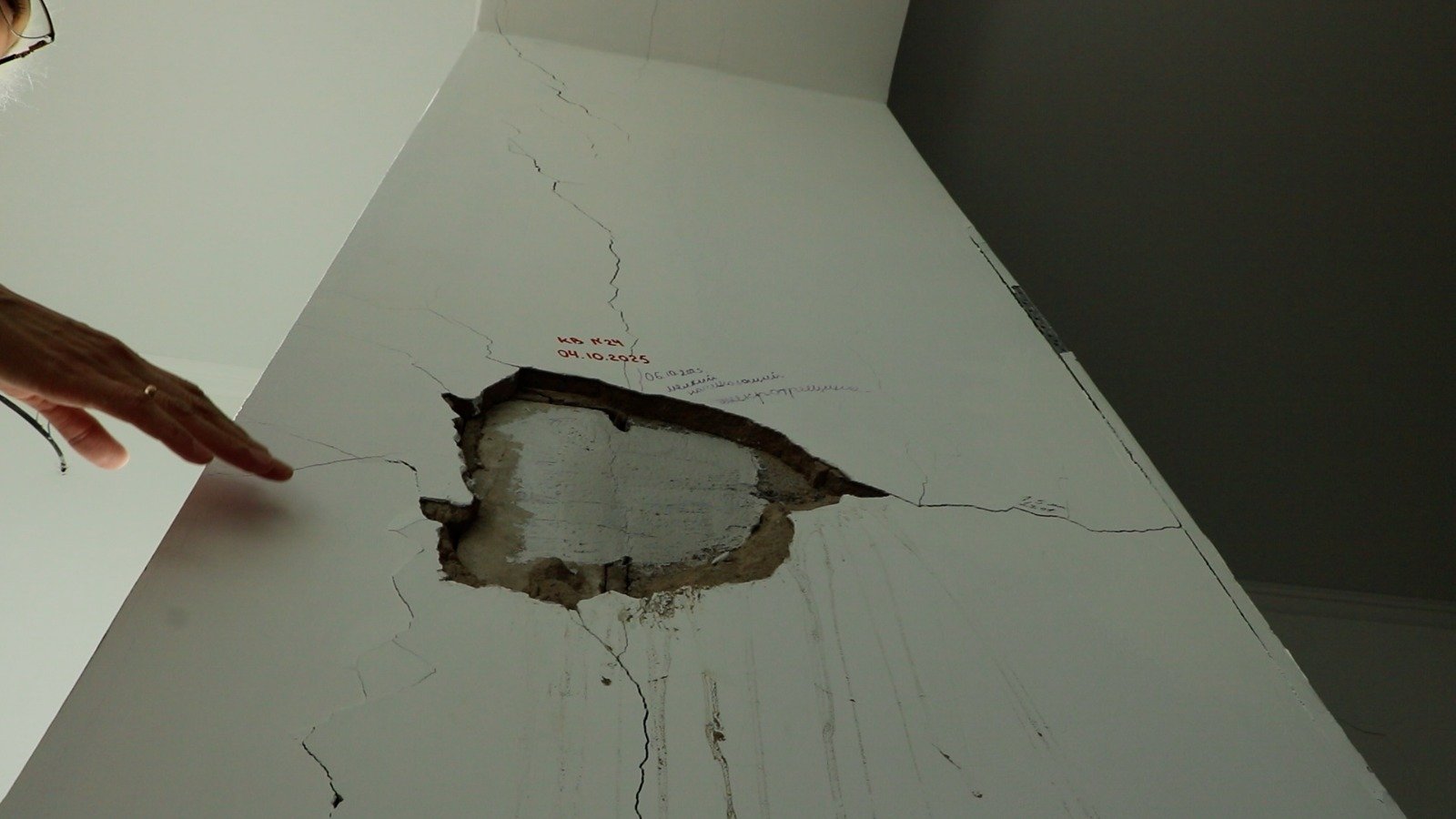 «Всё началось с мелких трещин. Мы думали, что дом новый, возможно, это усадка, но трещин становится всё больше, и они расширяются. Письмо-претензию мы писали строительной компании „Инвест Строй ЛТД“ из Атырау, они показали нам техзаключение, сказали, что дом трещинами покрылся из-за грунтовых вод. Сообщили, что сделают укрепление, и их не будет. Но прошло полтора года, трещин становится всё больше», говорит жительница пятого этажа Орынгуль Майсарова.