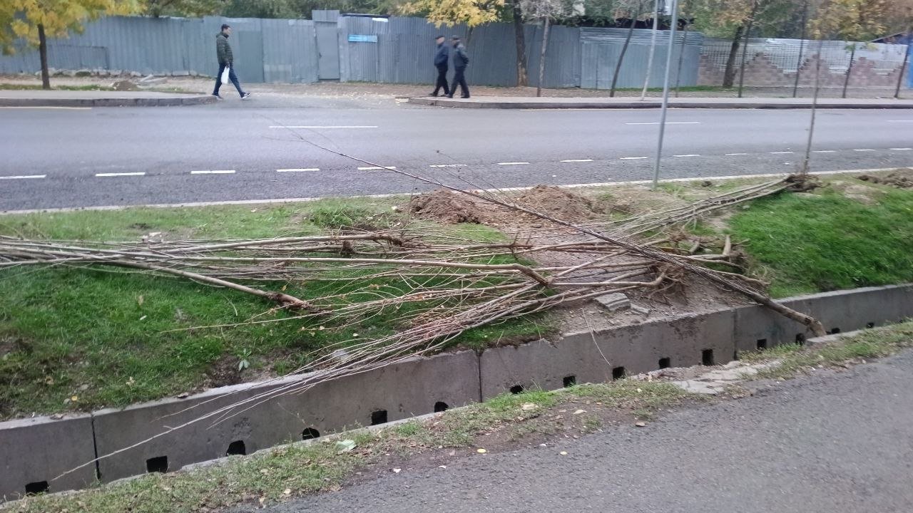 После этого управление экологии перекинуло участок на баланс акимата Алмалинского района, хотя по идее сначала нужно было вырастить деревья. Тем не менее акимат получил под свою ответственность посадку из 250 живых тополей.