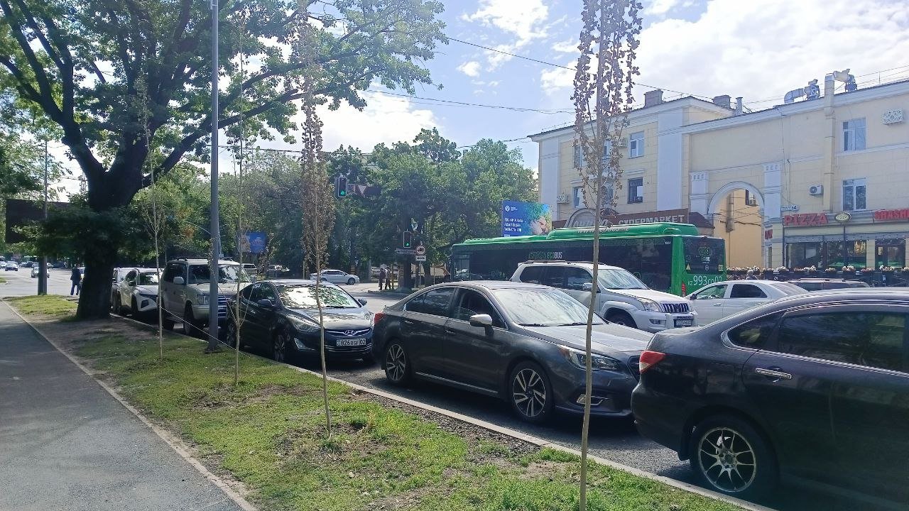 Как пример можно взять участок улицы Тлендиева между улицами Толе би и Кавказская. По нашим данным, управление экологии Алматы ещё в 2021 году высадило там 250 тополей.