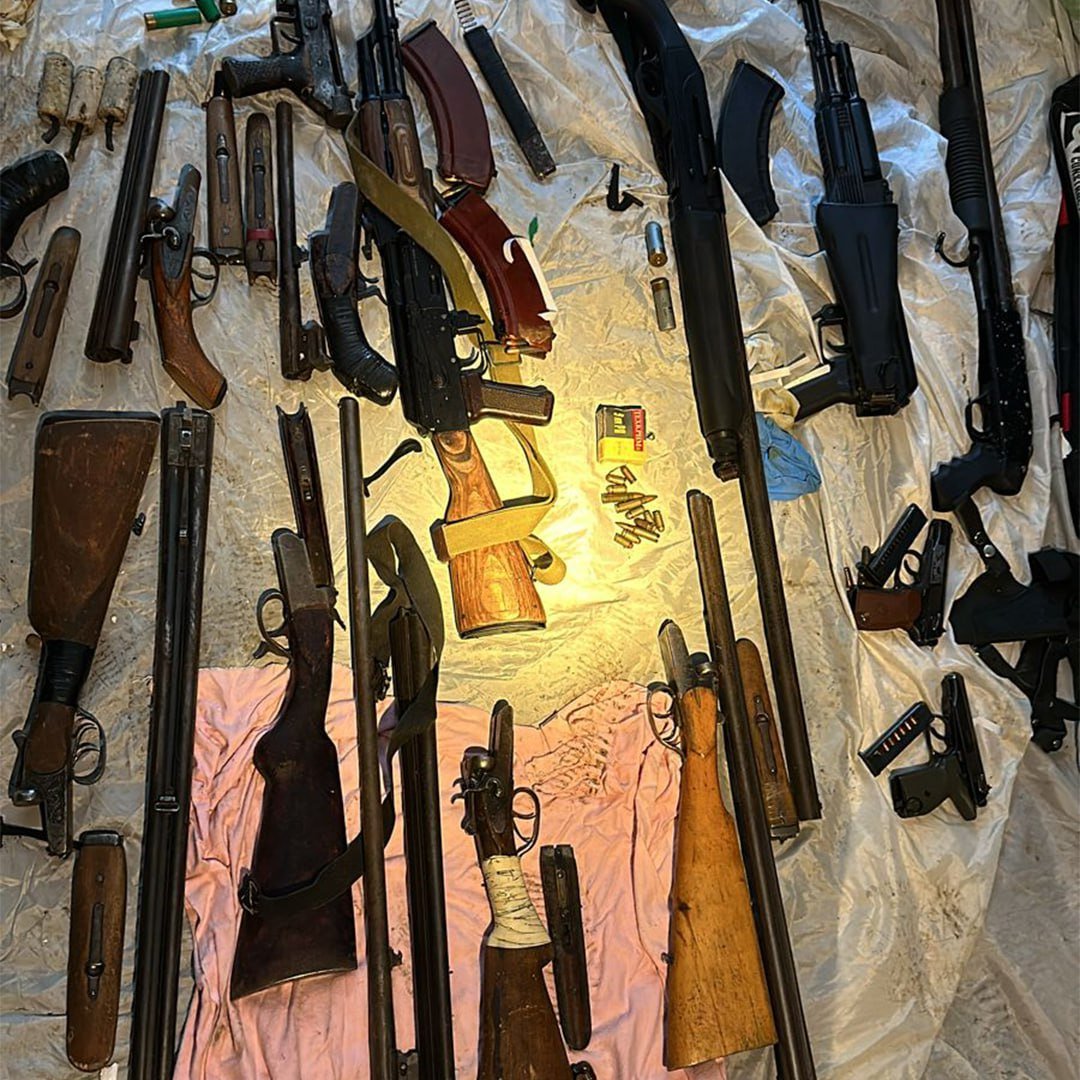 По данным КНБ, 28 июня в Актюбинской области во время обысков в доме одного из местных жителей изъяли 21 единицу огнестрельного оружия, в том числе два автомата Калашникова, восемь пистолетов, 11 ружей, а также светошумовую гранату, дымовые шашки, рации и 581 боеприпас различного калибра.