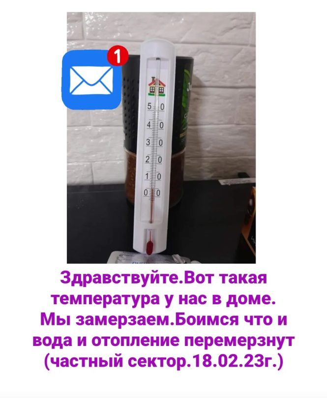 Впрочем, пока трубы потеплели не у всех. В сети появляются фотографии, на которых столбик термометра (в помещении) едва дотягивает до +5 градусов.