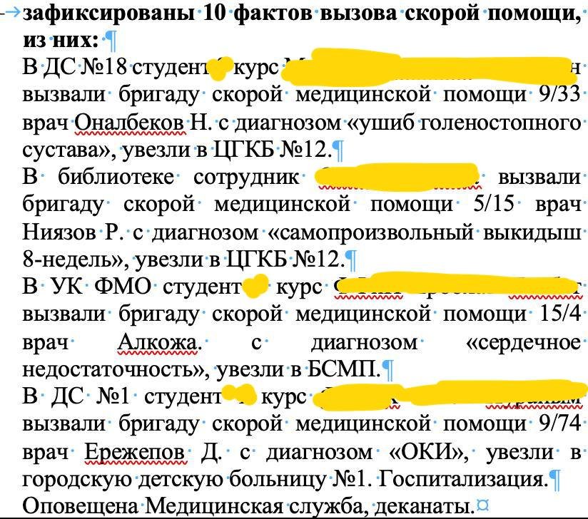 В Казахском национальном университете имени аль-Фараби вновь разгорелся скандал вокруг утечки персональных данных. В распоряжении редакции оказались документы, в которых открыто указываются имена студентов и сотрудников вместе с чувствительной медицинской информацией — от госпитализаций до диагнозов. Рассылки, по словам источника, попадали в кураторские чаты, а затем — без фильтра — распространялись среди студентов.