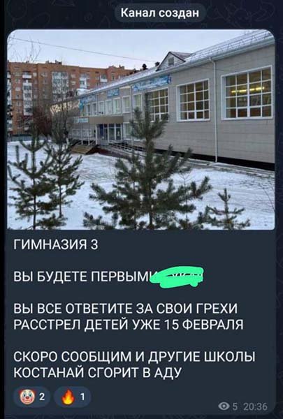 В Костанае неизвестные угрожают устроить массовое убийство в школах