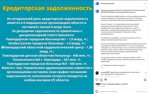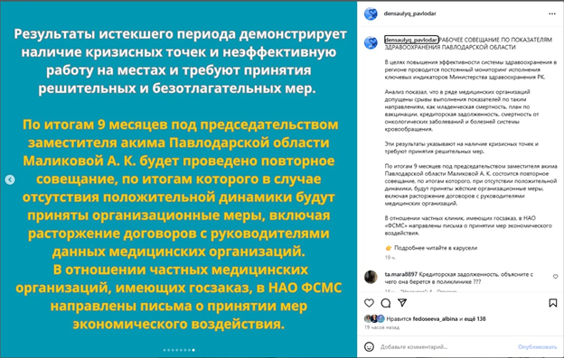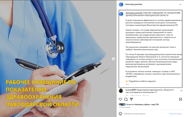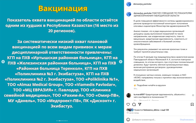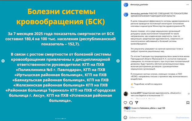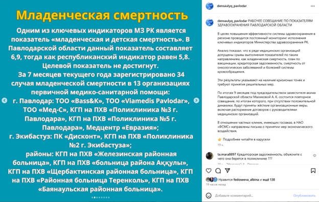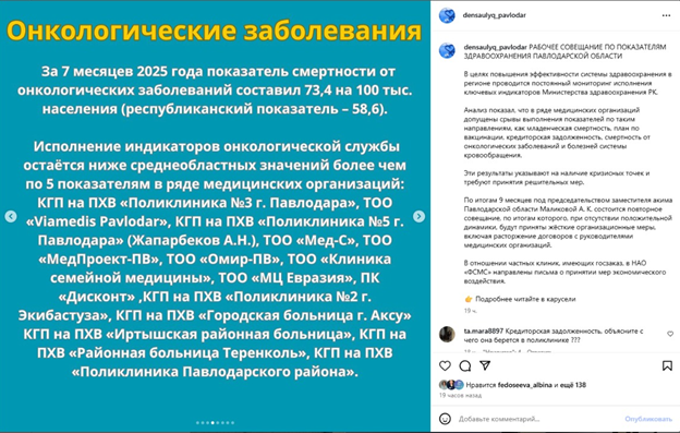 На официальной странице управления здравоохранения Павлодарской области в Instagram появилась неприглядная статистика. Ранее считалось, что дела в регионе с защитой здоровья обстоят относительно неплохо. Однако выяснилось следующее: