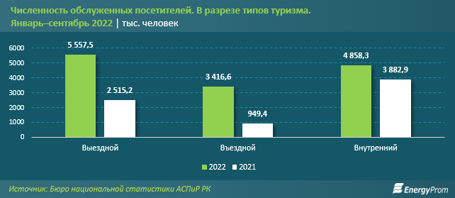 С января по сентябрь 2022 года в Казахстан приехали 3,4 млн туристов. Это в 3,6 раза больше, чем за аналогичный период 2021 года. Однако этот показатель никак не связан с улучшением туристического кластера страны, считают в Energyprom.