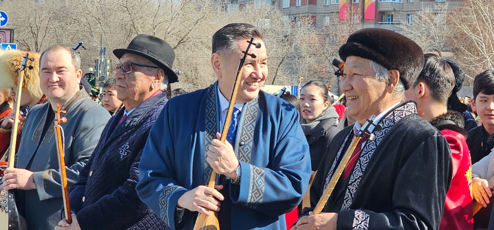 На площади Республики одновременно сыграли 5201 домбристов и исполнили народную песню в национальной одежде. Для исполнения выбрали традиционную компаозицию «Ақ Бұлақ».