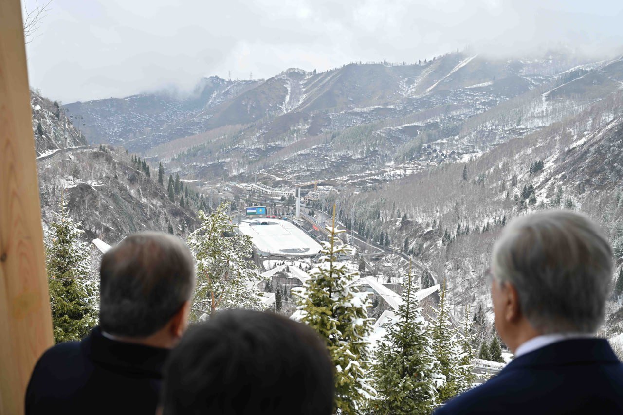 Полюбовавшись заснеженными вершинами, высокопоставленные лица заглянули в спортивный комплекс «Медеу». Они посмотрели фотовыставку об истории высокогорного катка и ознакомились с проектом нового этапа его развития.