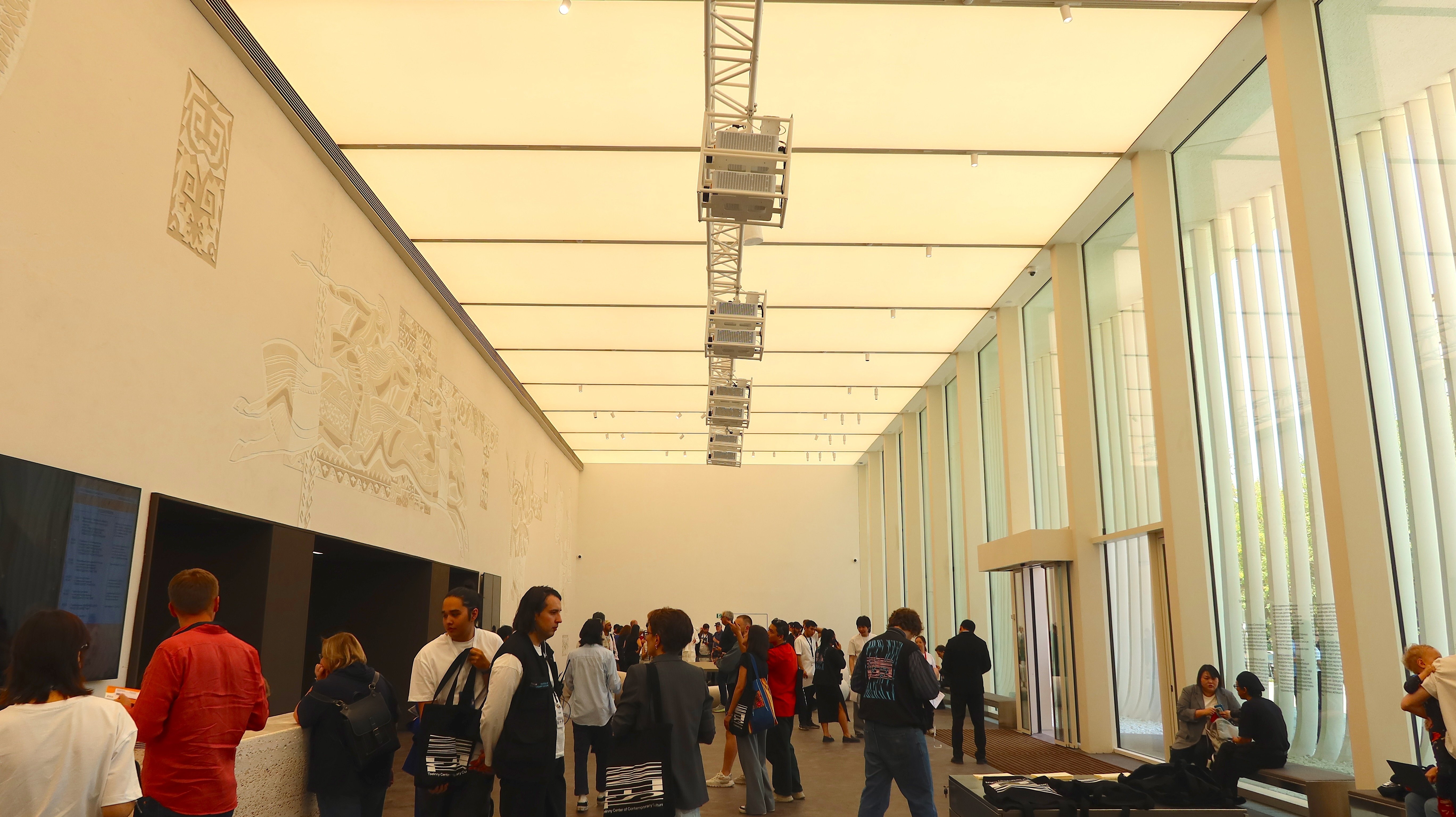 Высокий потолок и светлое пространство вместе с архитектурными формами напоминают о сложности задумки.