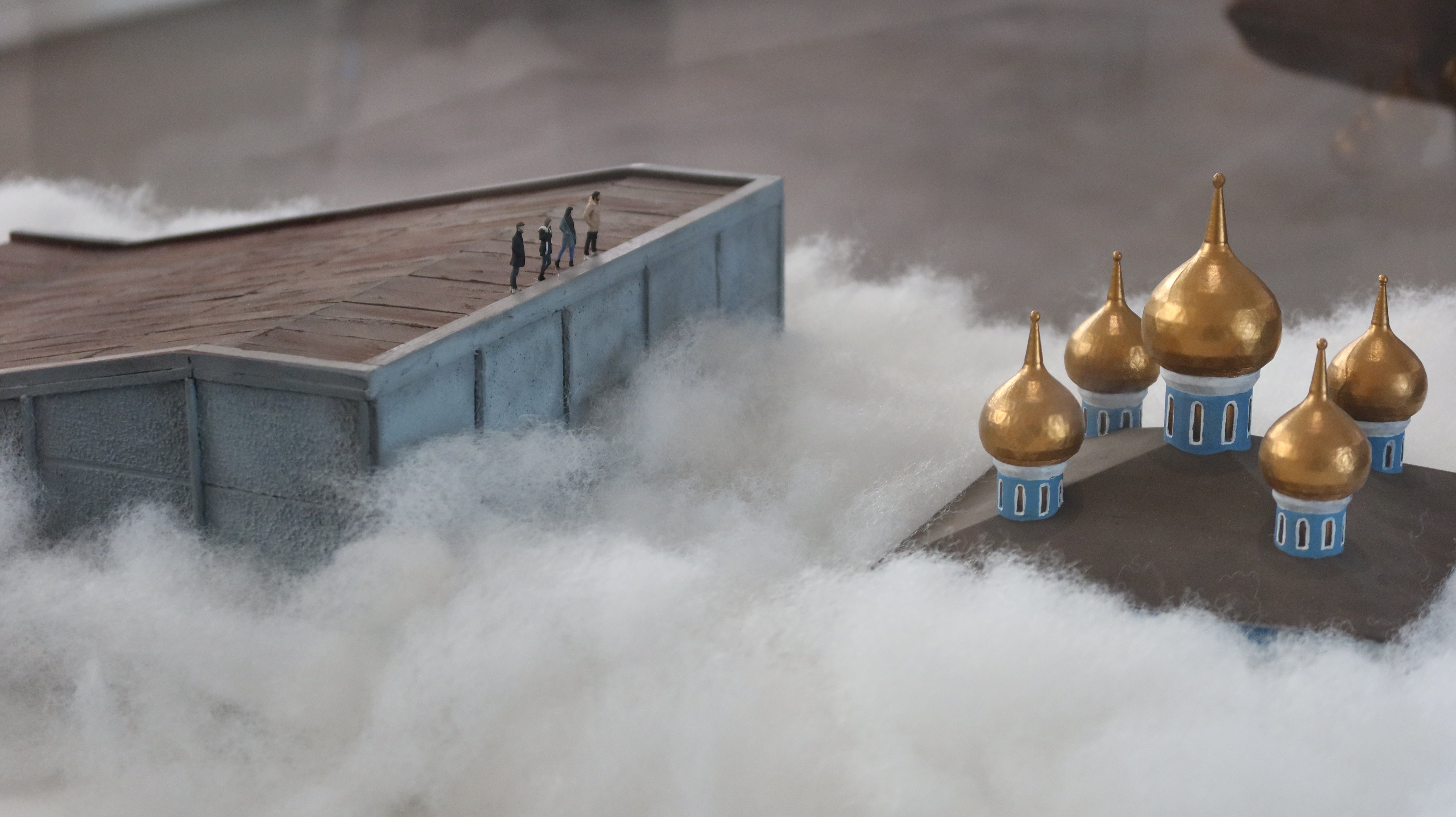 Макет привлёк внимание. Жаль, облака редко спускаются на уровень второго и третьего этажей, но идею показали сказочно.