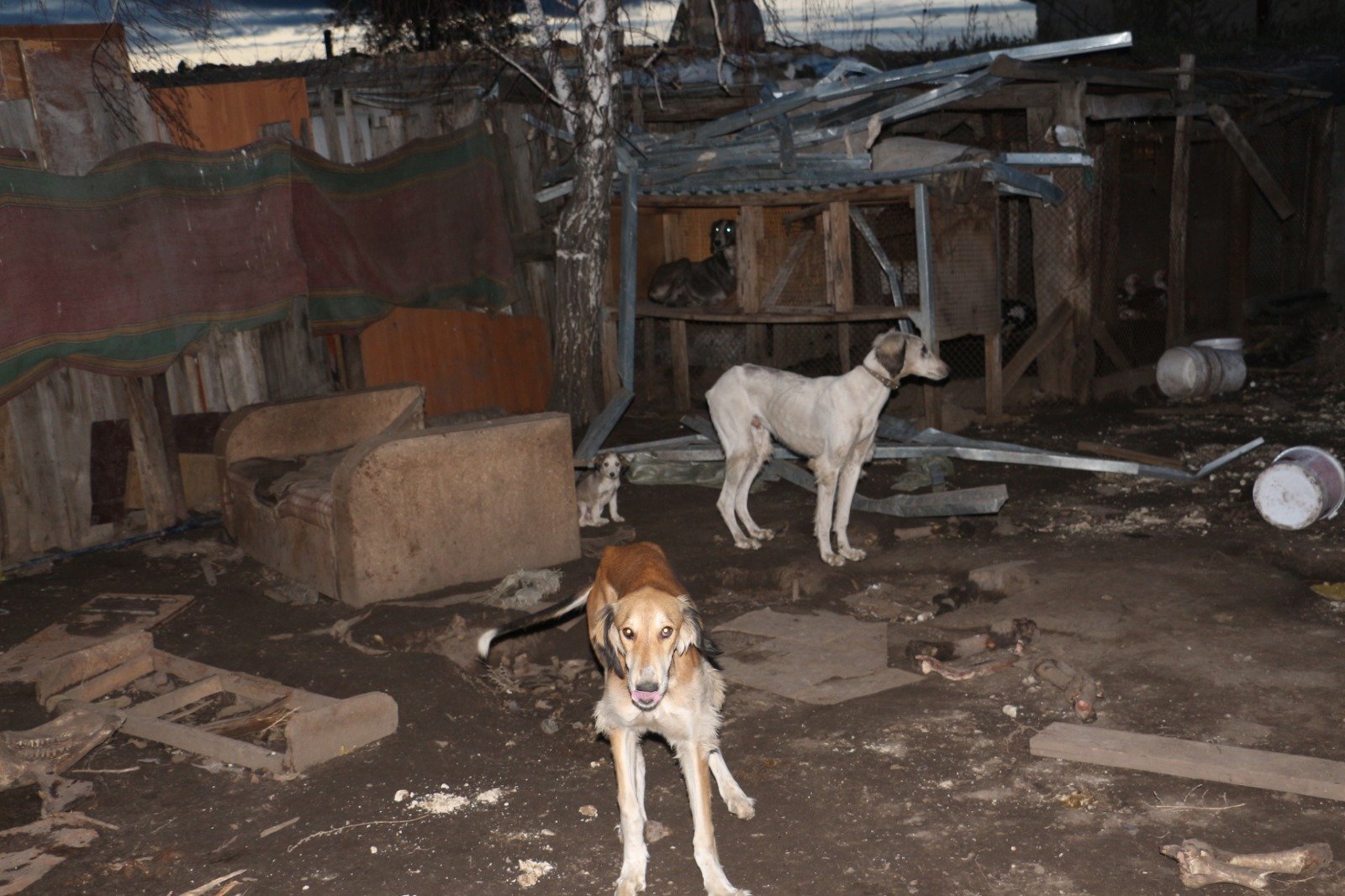 Ранее судимый житель посёлка Актас содержит собак на полузаброшенной даче в ветхих сараях и кроличьих клетках. По его словам, он и сам не знает сколько животных у него находится. Сначала говорит, что около 50, потом уверяет - 15 взрослых псов и десяток щенков. На возмущение волонтёров мужчина заявил, что делает благое дело – спасает национальную казахскую породу собак тазы.