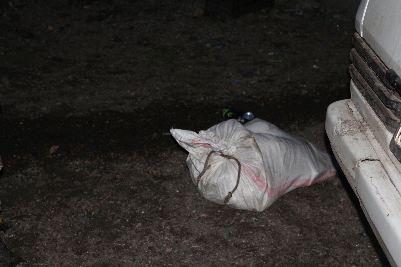 При осмотре территории волонтеры нашли большой мешок из-под сахара. В нем находились два крупных щенка тазы. У одного из них были туго перемотаны проволокой морда и лапы. Мужчина пояснил, что связал собаку, чтобы везти на автобусе.
