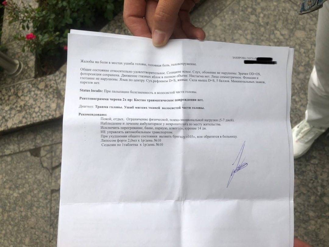 "Я начала дёргать дверь, и вижу, что он встал в проёме. Я сказала ему пропустить меня внутрь. Человек находится в захвате и неизвестно, что с ним могут сделать. Я спокойно стояла, даже не провоцировала его. Хотя сейчас негативная группа говорит, что я на него напала и избила, преследуя личные цели. Но по итогу мне сломали пальцы, у меня ушиб головы. Я находилась в состоянии аффекта, я защищалась", – объясняет Токболатова.
