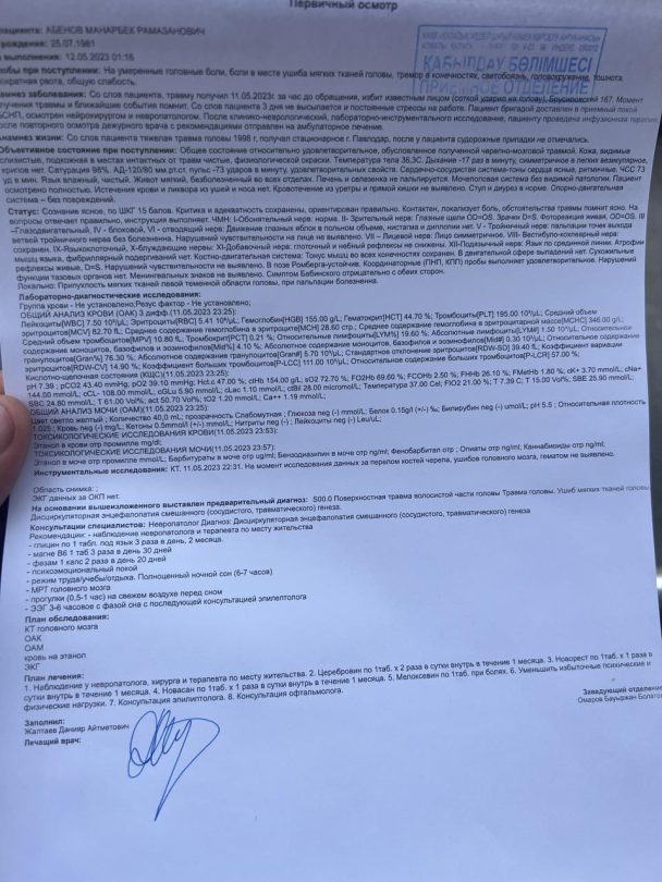 Сегодня у Гаухар ушиб головы и перелом пальцев, а, по словам Абенова, он получил травму головы.