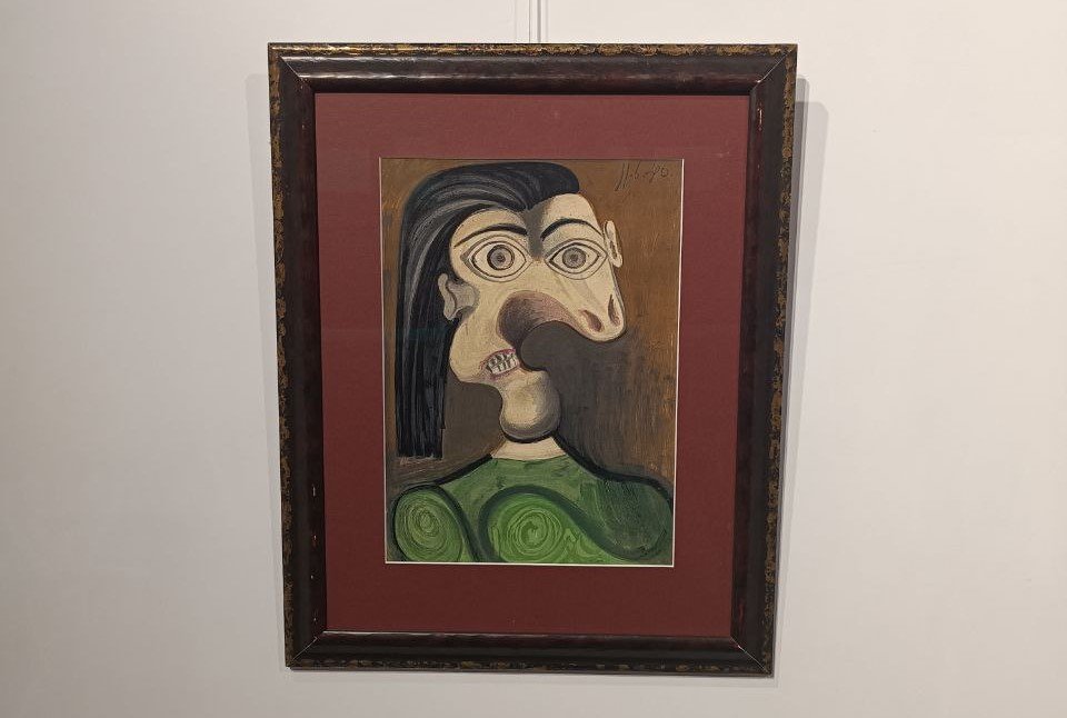 В экспозиции представлены работы Пикассо разных лет. Тут и вполне классические портреты (хоть и в меньшинстве), и узнаваемое кубическое безумие. Все – небольшого размера, и зрители застревают возле них, рассматривая каждую деталь. Особенно интересно изучать сумасшедшие портреты мэтра. Искажённые, дырявые, кривые лица с элементами разных форм: треугольными языками, глазами-каплями, ушами, напоминающими по форме асыки. Смотришь на некоторые и вспоминаешь старый анекдот: клиентка просит художника изменить цвет её глаз на картине, а тот отвечает, ладно, только я не помню, где их нарисовал!
