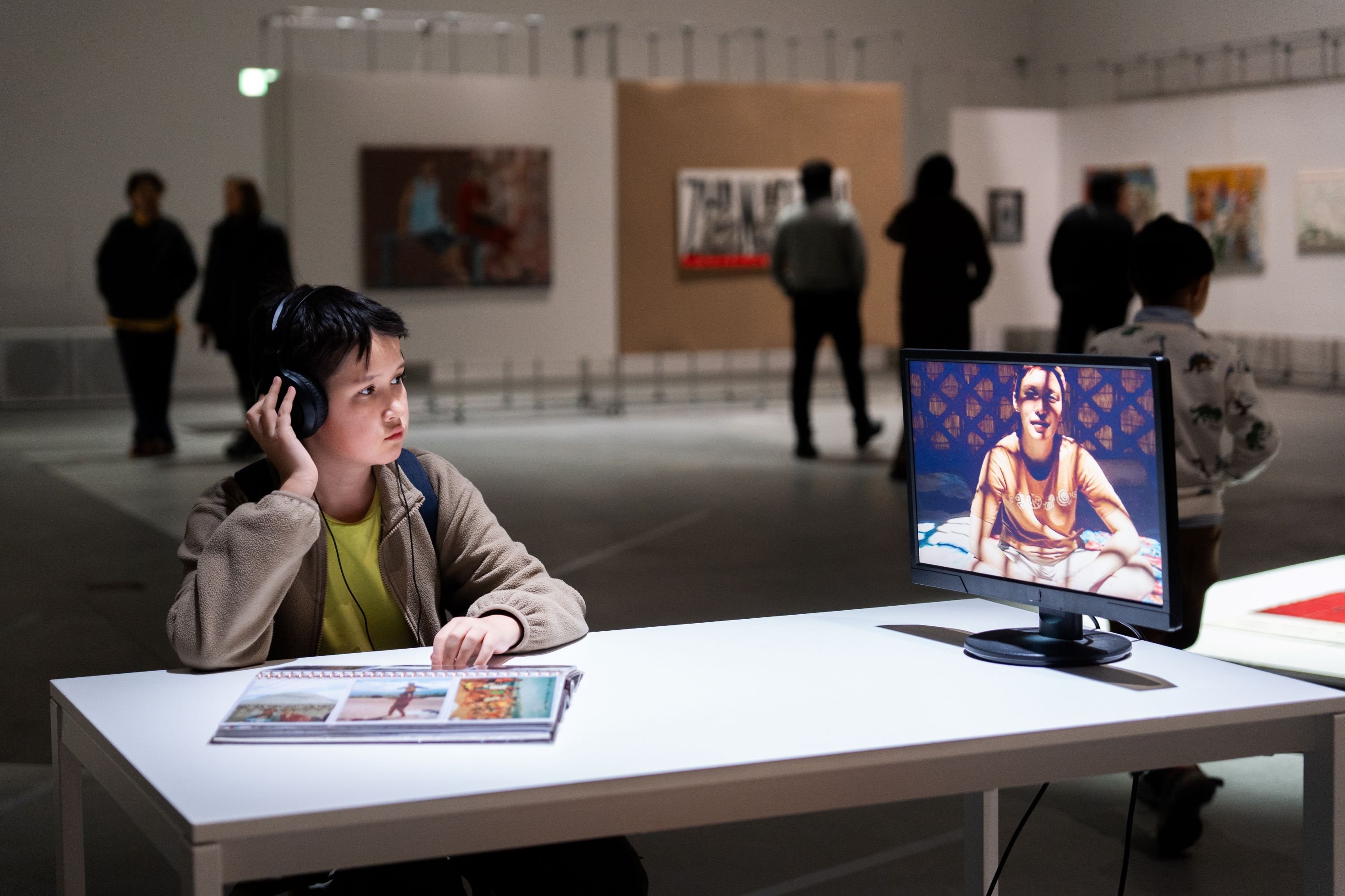 Несмотря на то, что сам термин «художник» у нас больше ассоциируется с живописью, на выставке представлено множество стилей: видеоарт, декоративные панно, текстиль. Из последнего особенно хочется выделить работы Алибая и Сауле Бапановых – яркие, многогранные и нетипичные по форме.