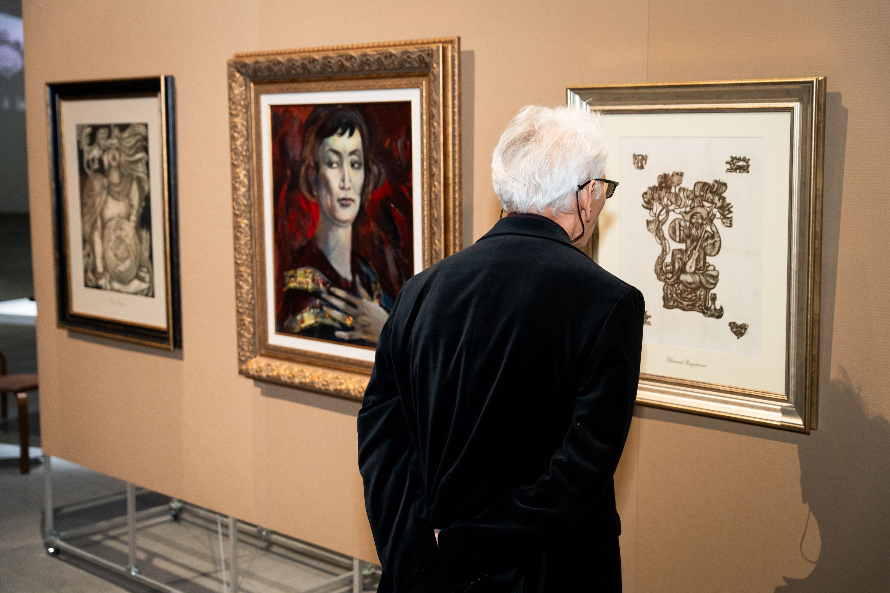 Без классиков на выставке тоже не обошлось. Некоторым особняком, с одной стороны, стоят работы Евгения Сидоркина – безусловно, культовой личности для «Целинного». Его сграффито на стенах бывшего кинотеатра долгое время считались утерянными, однако были найдены и восстановлены во время последней реконструкции. С другой стороны, не отметить их почти сказочную историю любви с Гульфайрус Исмаиловой невозможно. Не встреть он свою музу на берегах Невы, не приобрёл бы Казахстан одного из своих любимых «приёмных сыновей». И работы самой Гульфайрус, и её портреты, созданные мужем, – изюминка выставки.