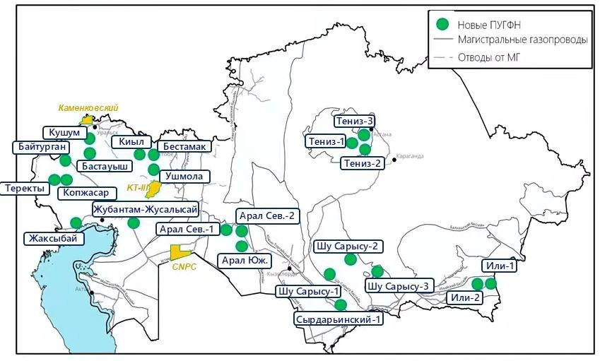 Параллельно в стране рассматривают создание новых подземных хранилищ газа вдоль ключевых магистральных газопроводов. Также географию поисковых работ могут расширить за счёт получения лицензий на государственное геологическое изучение недр в Центральном Прикаспии, Тенизском и Шу-Сарысуском бассейнах.