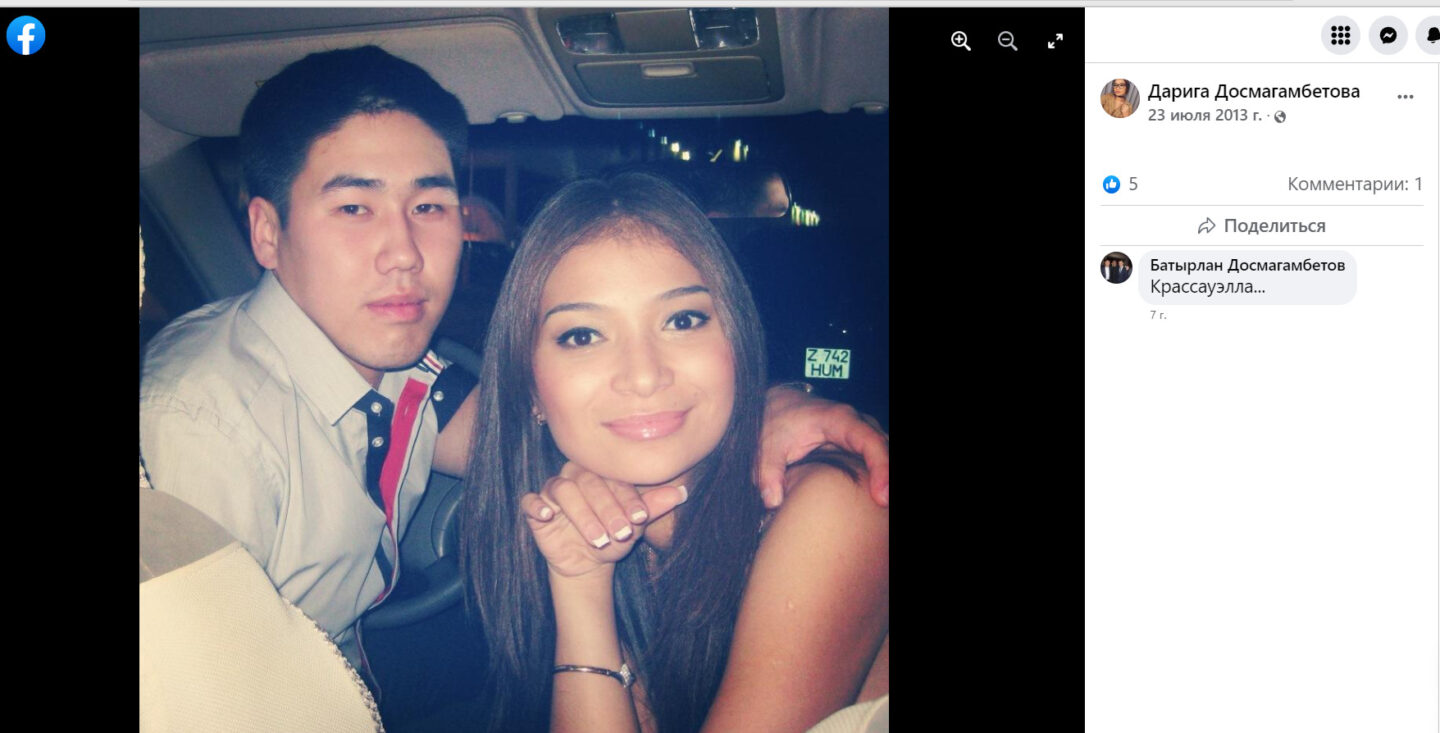 В друзьях Ибрагима Алькенова в Facebook супруги нет, как и общих фотографий, в отличие от страницы самой Дариги Алькеновой (до замужества Досмагамбетова).