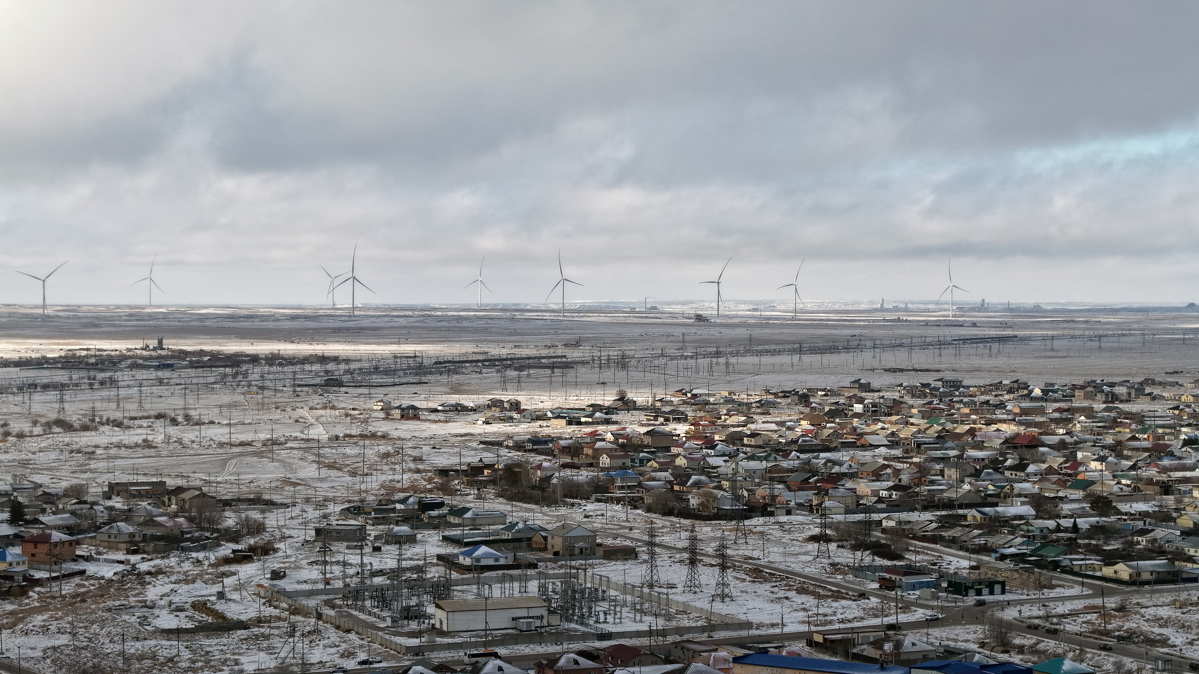 Небо над городом украшают дымящие трубы... и крылья многочисленных ветряков. Согласно официальной информации, в Жезказгане установлено 16 ветровых мачт. Инвестор проекта — компания из Гонконга.