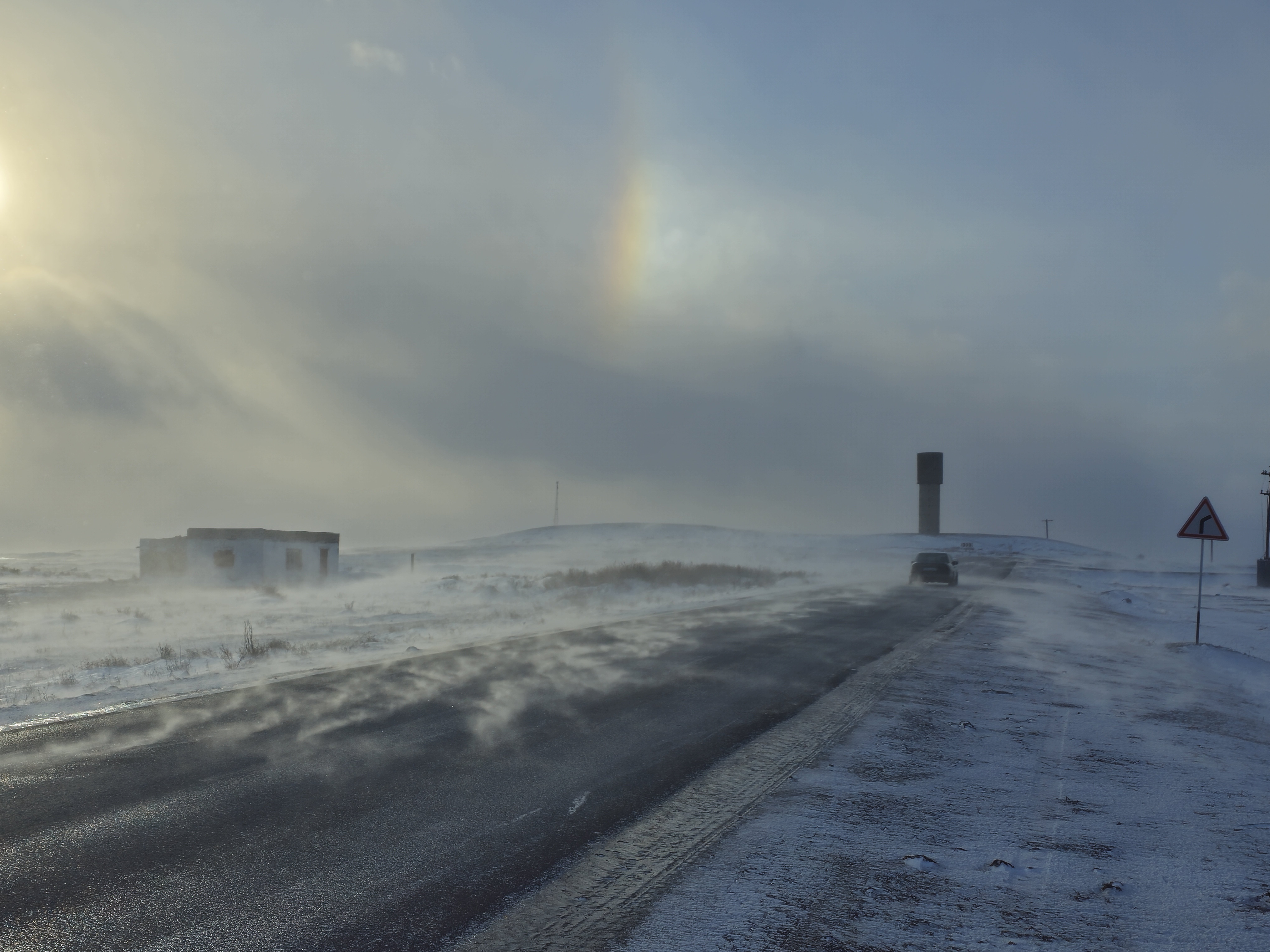 Подскакивая на многочисленных кочках и ямах, с замиранием сердца прислушиваясь к ворчанию двигателя нашего побитой жизнью машины, мы часами гоним по пустой скользкой трассе со скоростью около 50 км. Сильный ветер постоянно сносит нас с дороги. Из снежного тумана и мглы навстречу неожиданно поднимаются остатки древних сооружений...